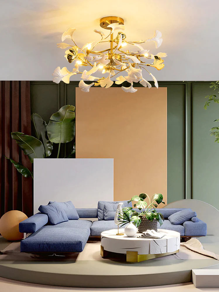 Modern Ceramic Gingko Chandelier for Living Room/Bedroom