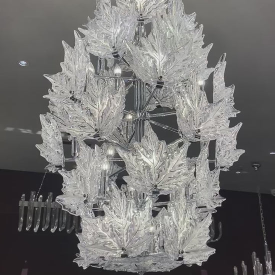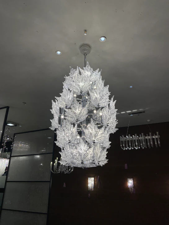 Add a touch of elegance to your living or dining room with our Modern Creative Clear Crystal Maple Leaf Chandelier. Handcrafted with high-quality materials, this unique design offers a contemporary flair and becomes a stunning statement piece. Elevate your home decor with this sophisticated chandelier.