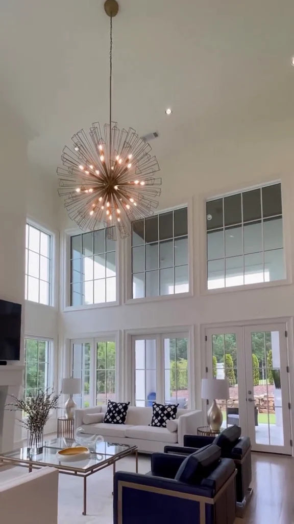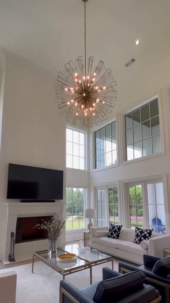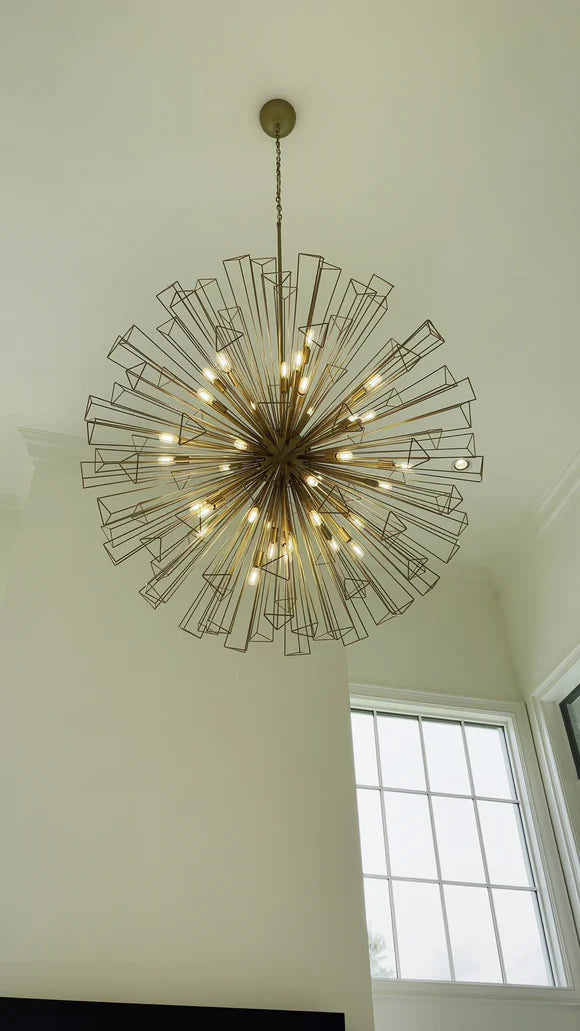This Modern Creative Dandelion Chandelier brings brightness and artful design to any room. With its prismatic shapes made from slender metal rods, it maximizes open space and creates a warm, inviting atmosphere. The multi-directional light and dramatic dandelion silhouette add a playful touch to any space.