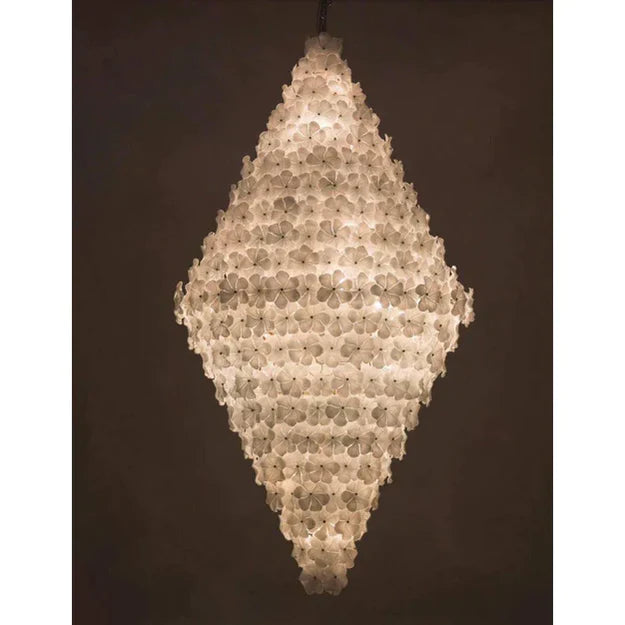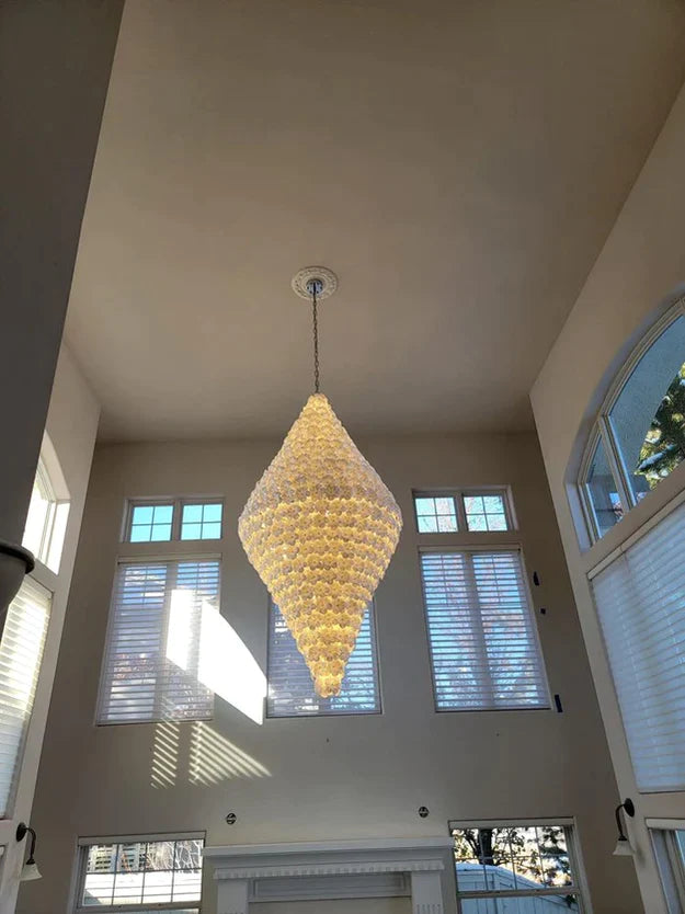 Elevate your space with our Modern Creative Extra Large Flower Glass Chandelier. The unique and creative design, featuring white glass flowers, adds an artistic touch to any room. With its one-of-a-kind design, this statement piece will enhance the look of your staircase, foyer, or villa. Elevate your interior with this stunning chandelier.