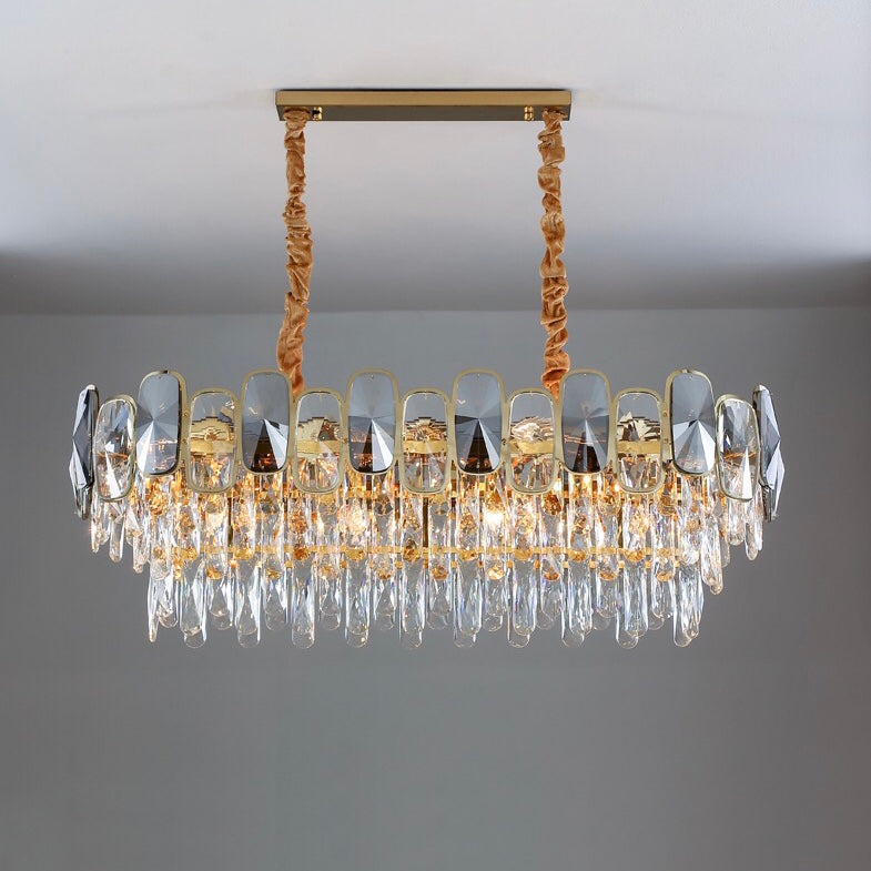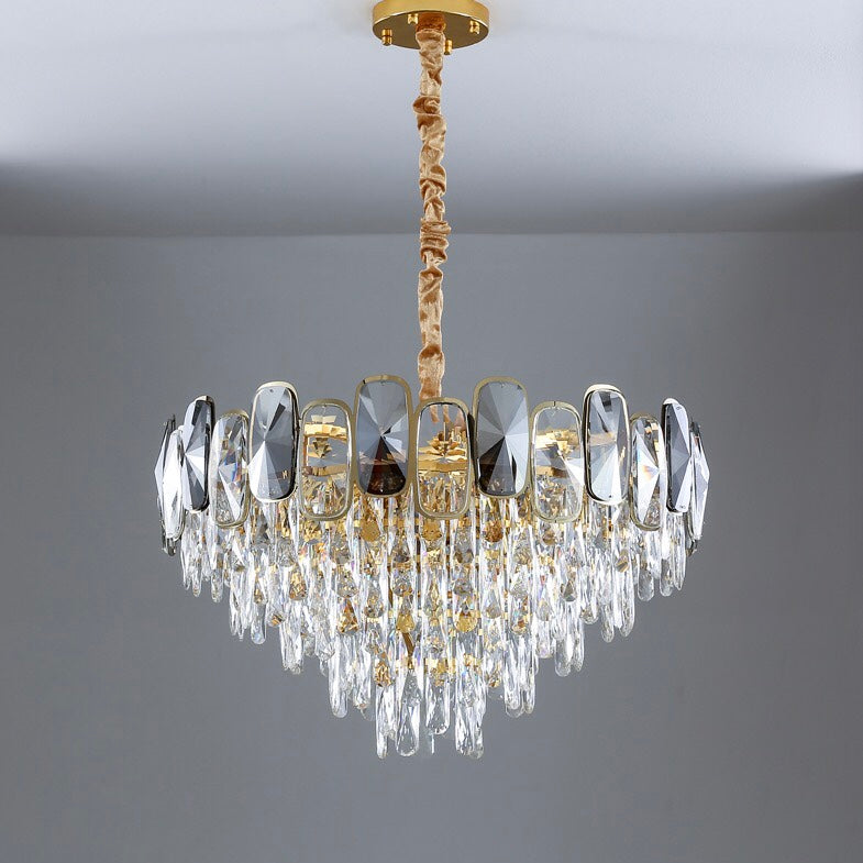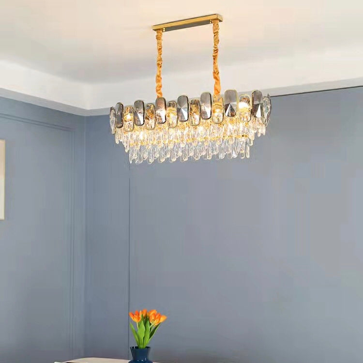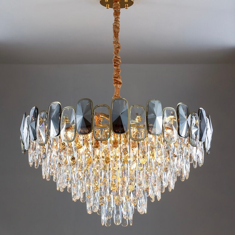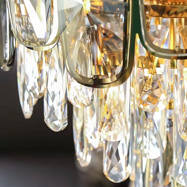 The whole light body is made of high quality stainless steel and K9 crystal which is finely cut into beautiful shape. It makes the chandelier sparkling and full of design. It is absolute stunning no matter light turns on or not.