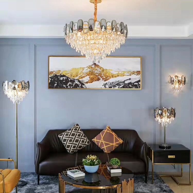 Modern Crystal Chandelier for Living/ Dining Room Luxury Bedroom Floor/ Table Lamp Whole Set