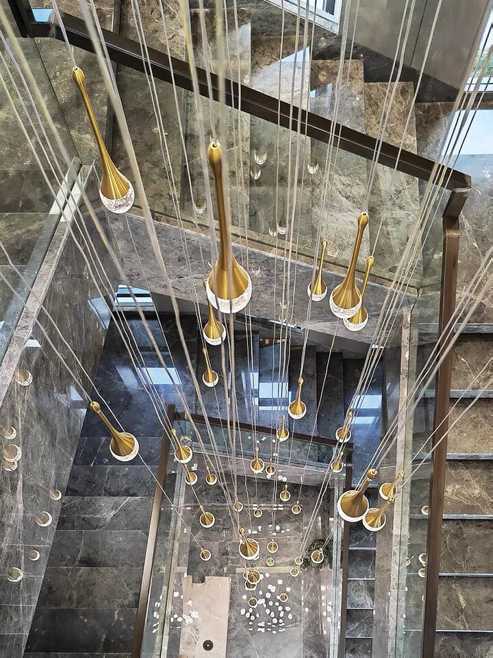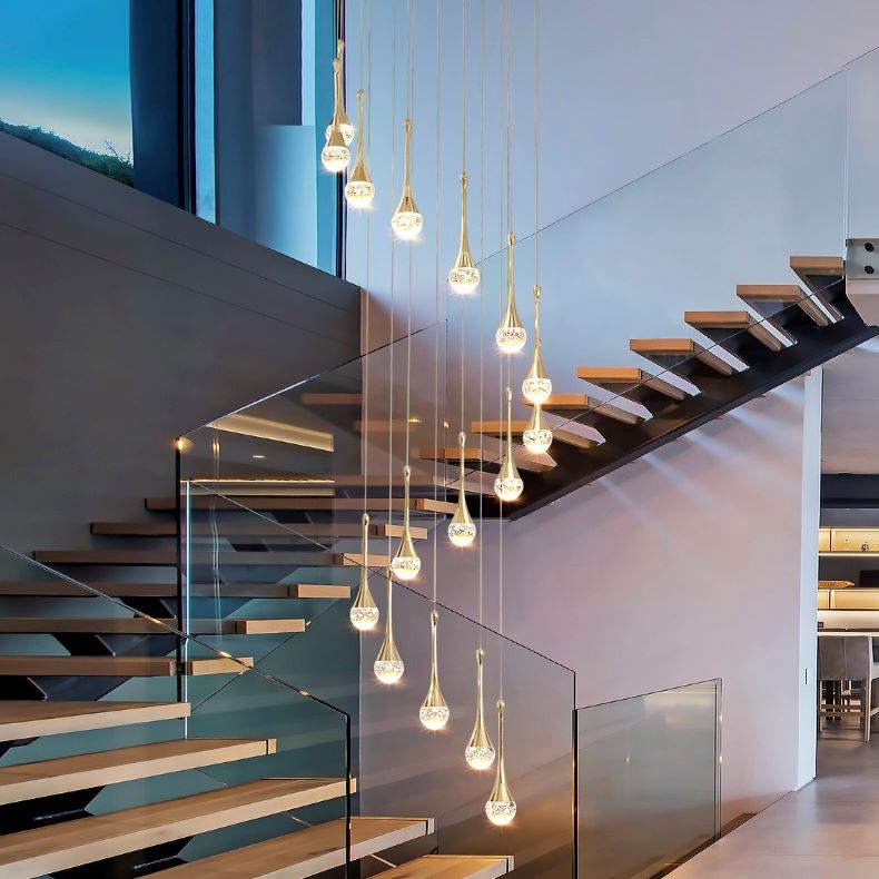 Modern Crystal Waterdrops Chandelier Foyer Staircase Ceiling Lamp Entryway Lighting