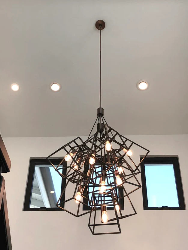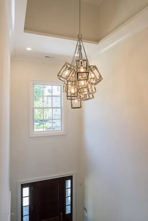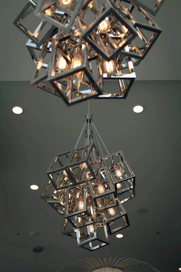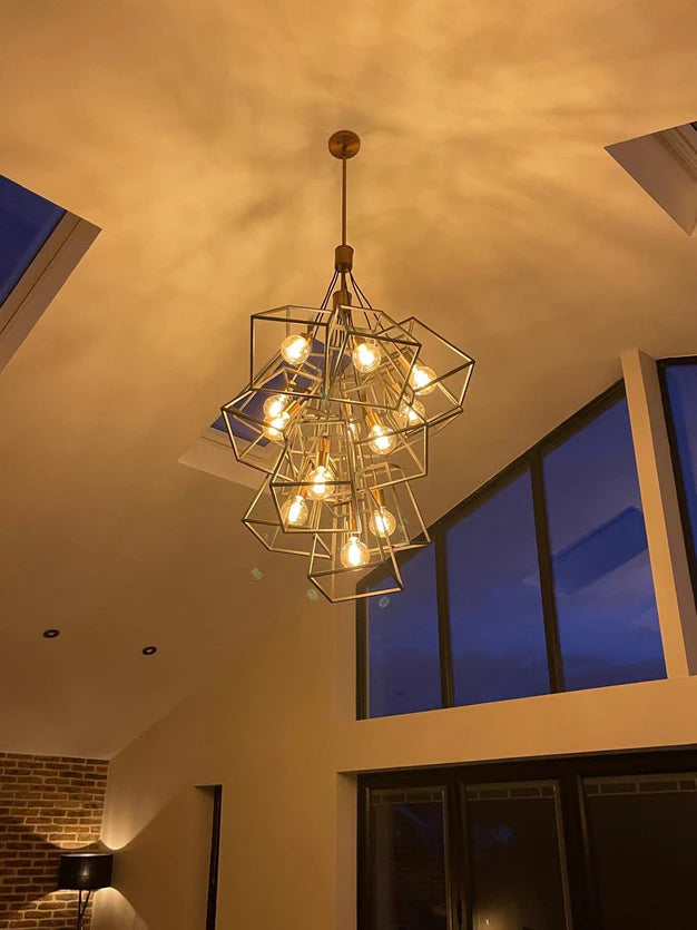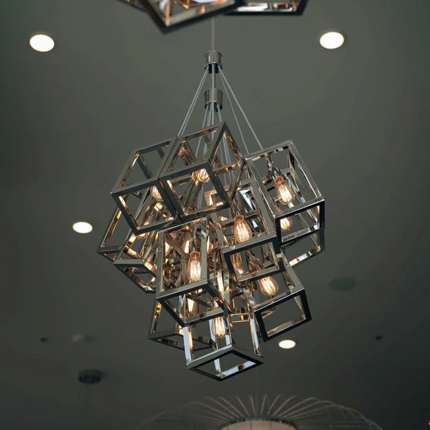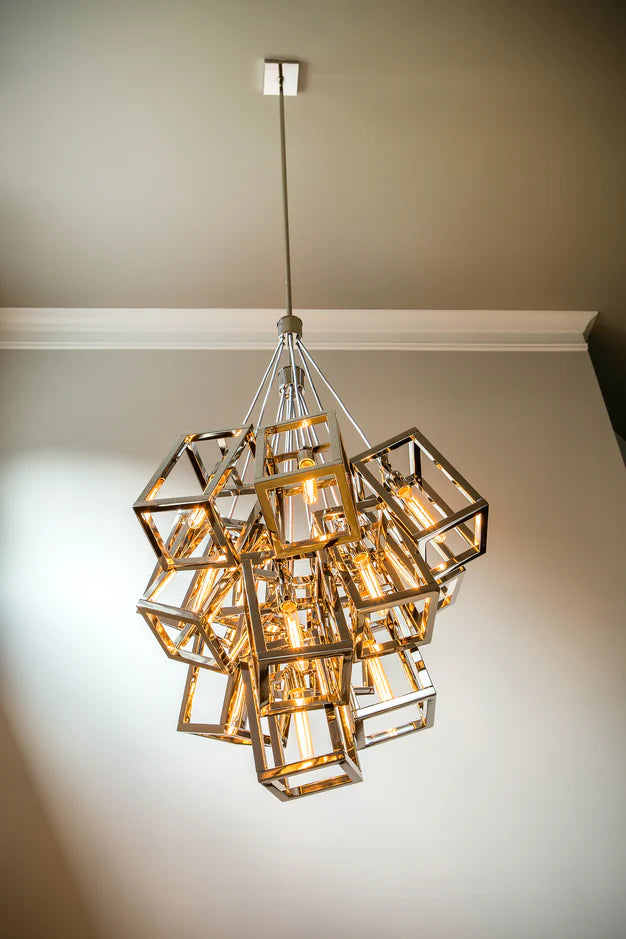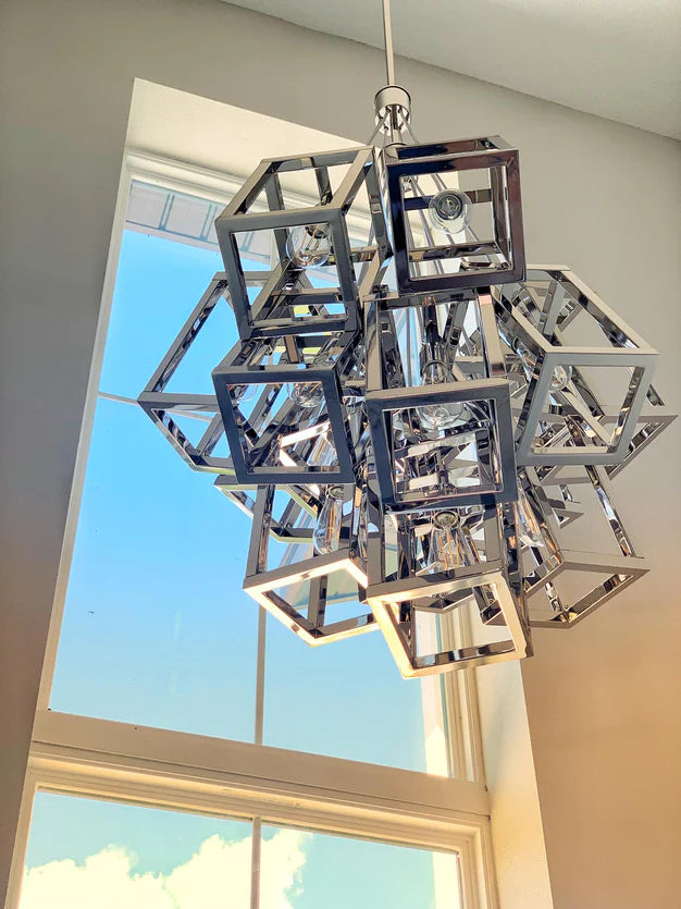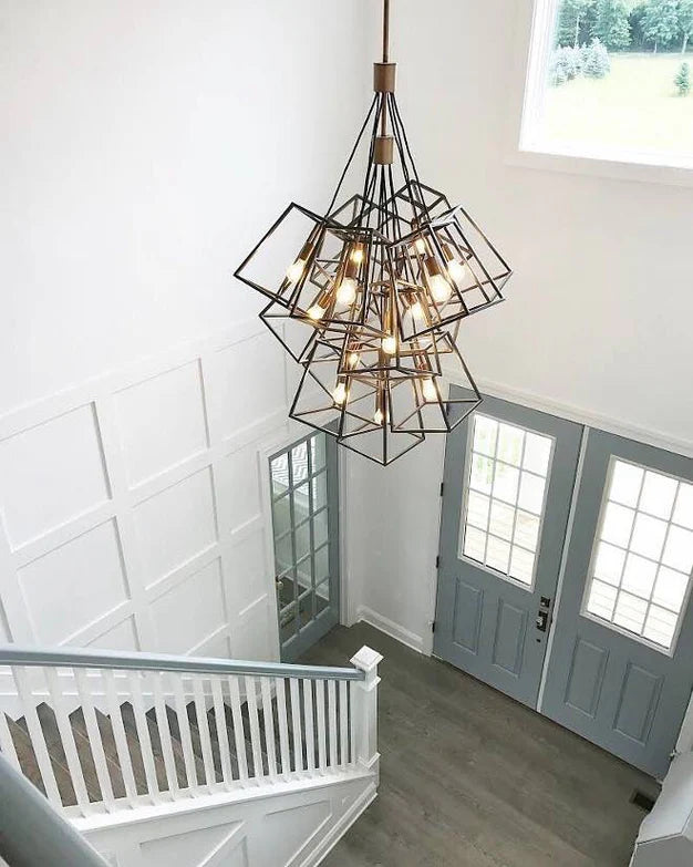 This modern cube cluster chandelier adds a sleek and stylish touch to any living room, staircase, or foyer. With its cool design, it will effortlessly elevate any space. Perfect for those looking for a contemporary lighting option.