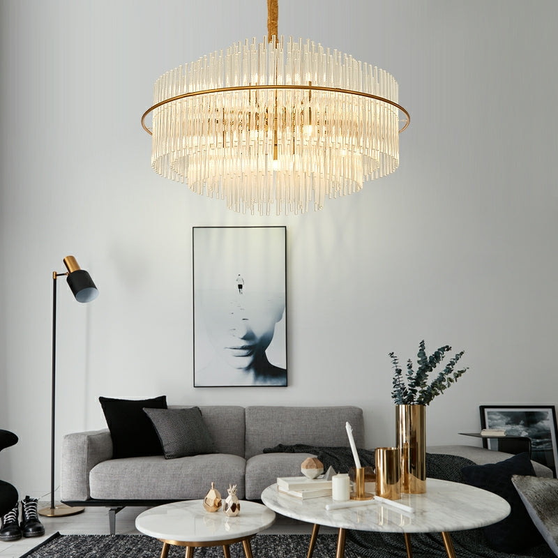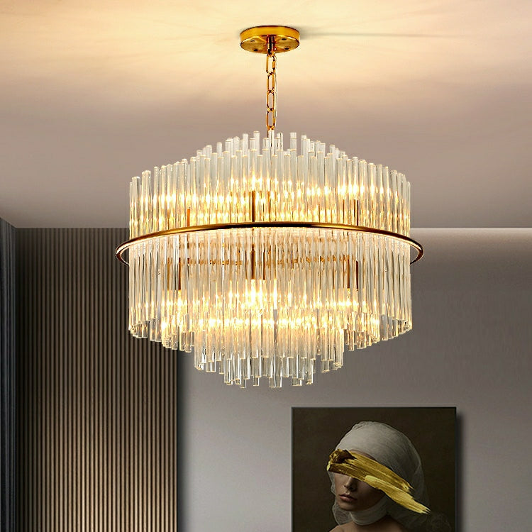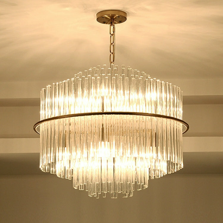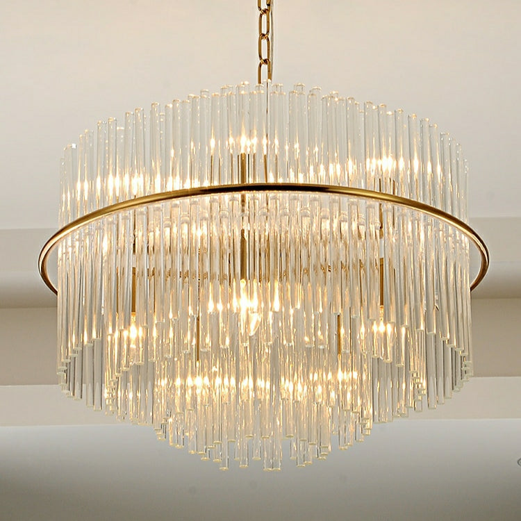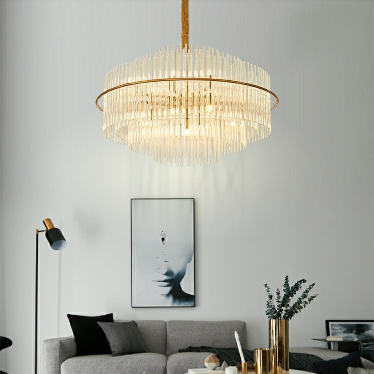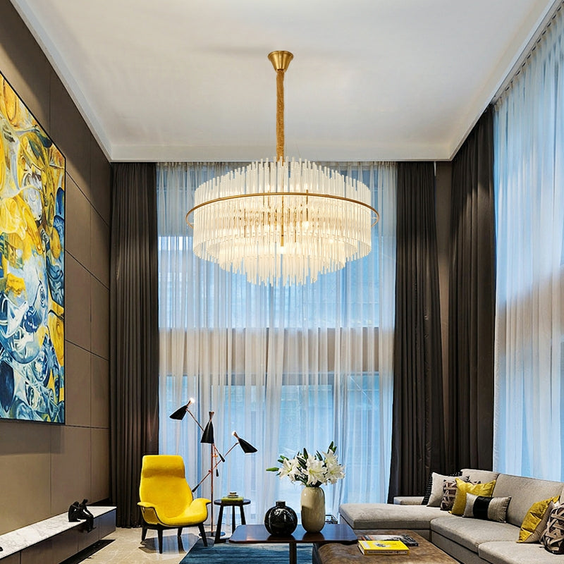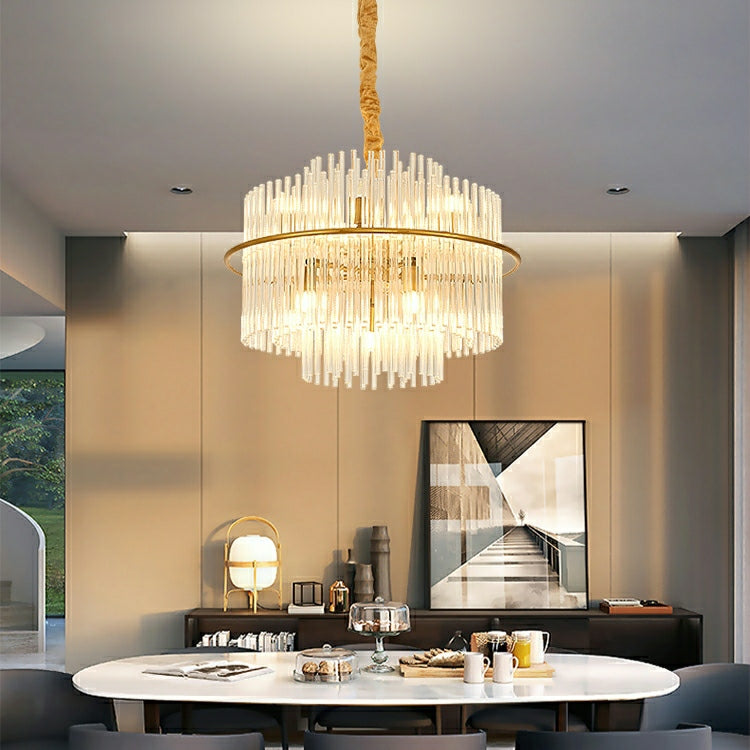 The whole light body is made of high-quality K9 crystal and metal. It is designed into a luxury modern style. It is absolutely stunning no matter light turns on or not.