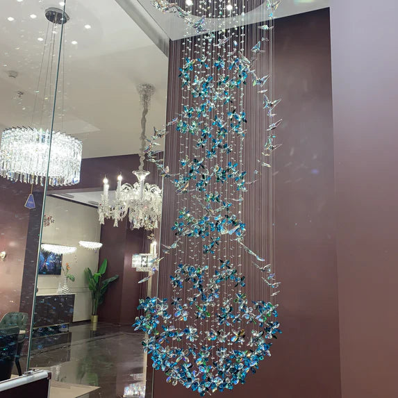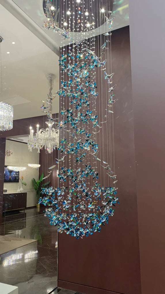 Modern Floating Blue Butterfly Crystal Chandelier for Living Room/Staircase/Foyer
