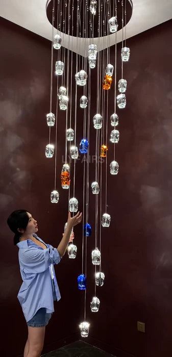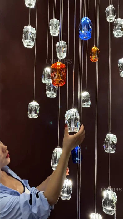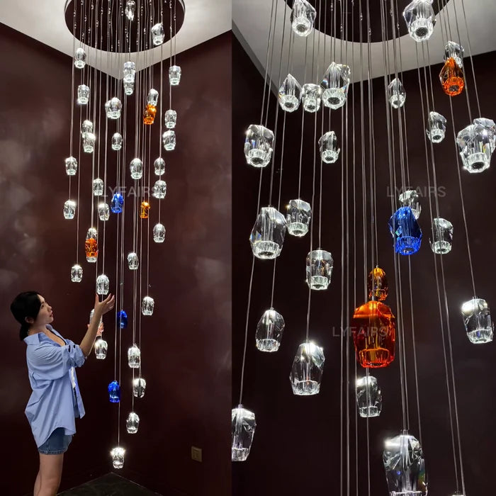 Modern Floating Clear/Blue/Amber Irregular Crystal Chandelier for High-ceiling