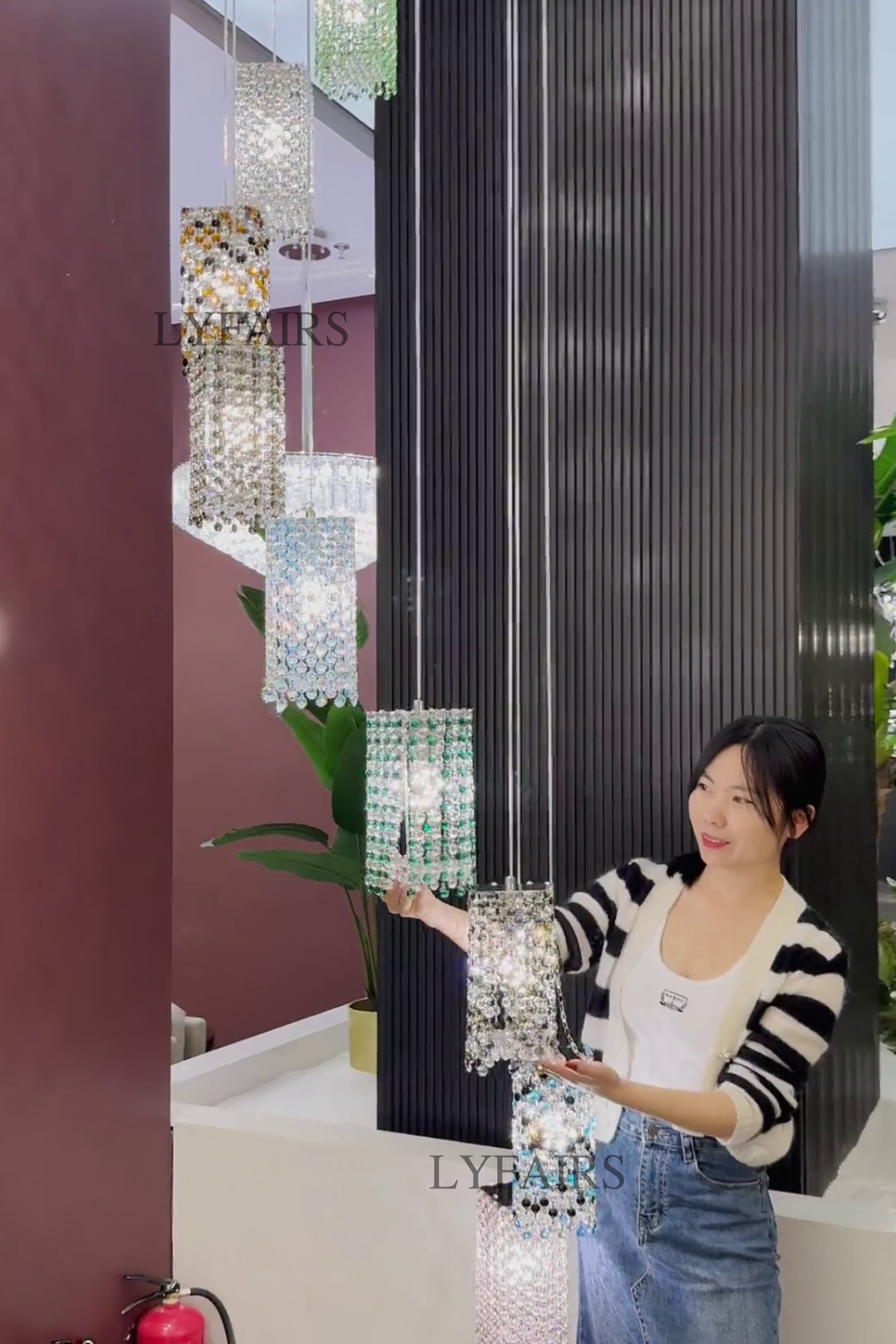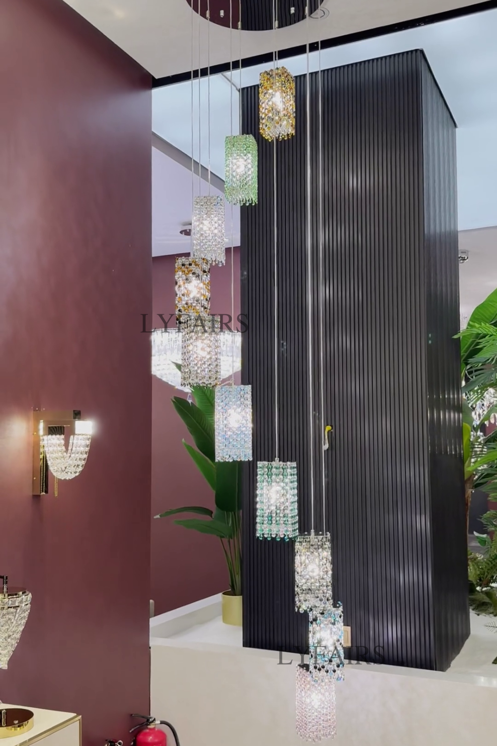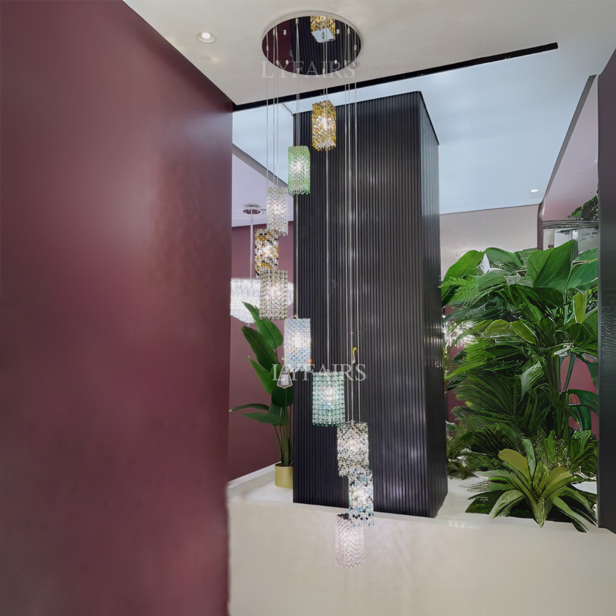 Modern Floating Colorful Crystal Chandelier for High Ceilings