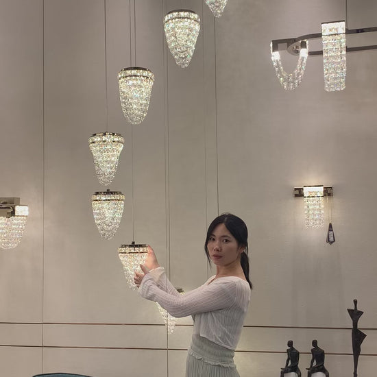 Modern Floating Crystal Conch Chandelier for High-ceiling