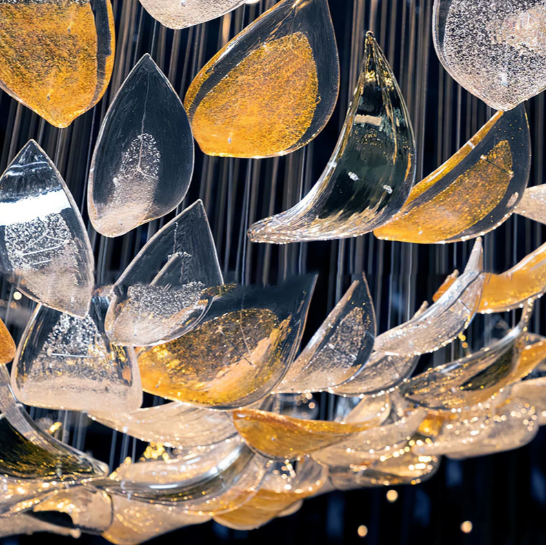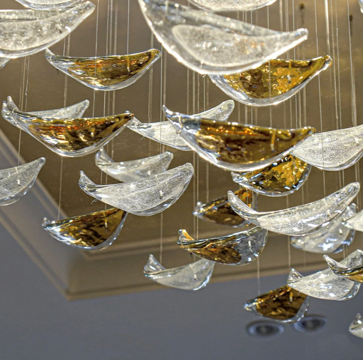 Modern Floating Glass Leaves Chandelier for High Ceiling/Hotel/Restaurant