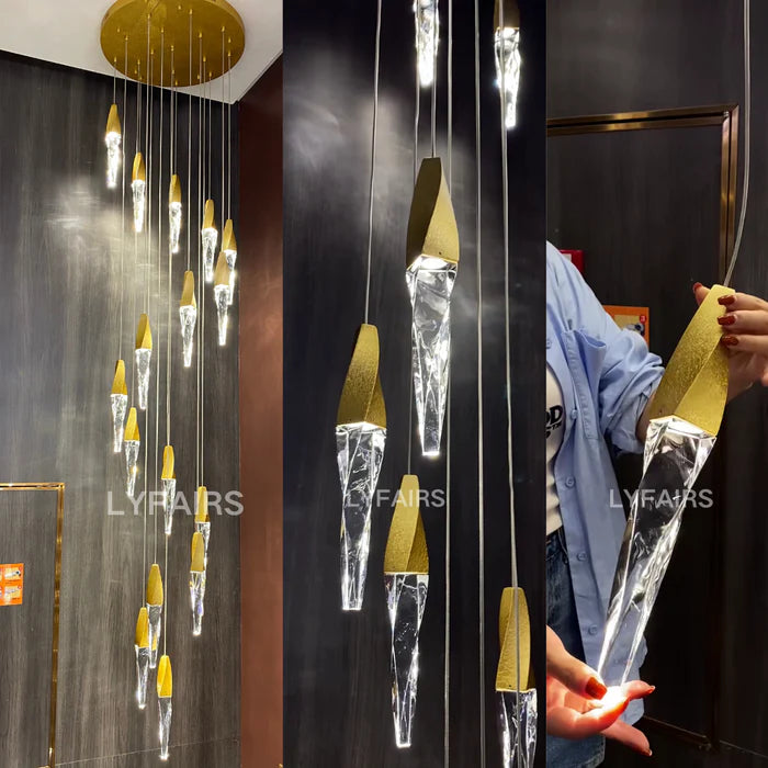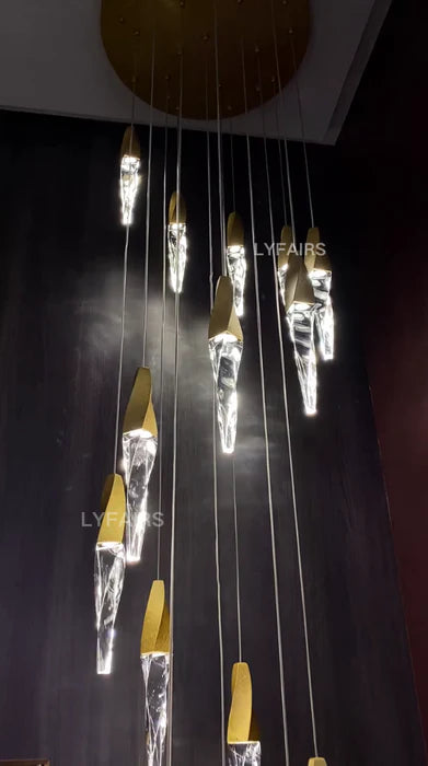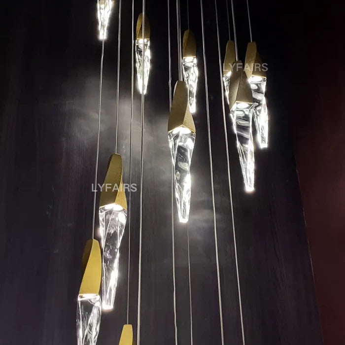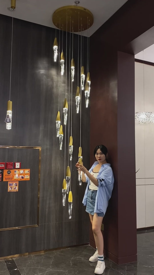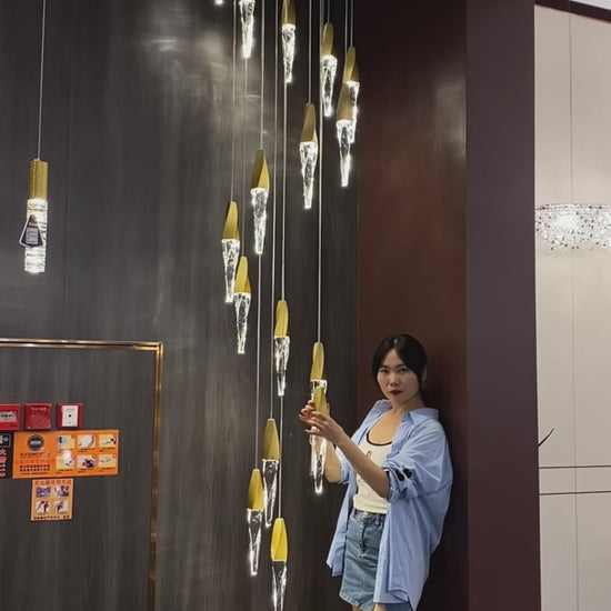 Modern Floating Spiral Crystal Chandelier for High-ceiling