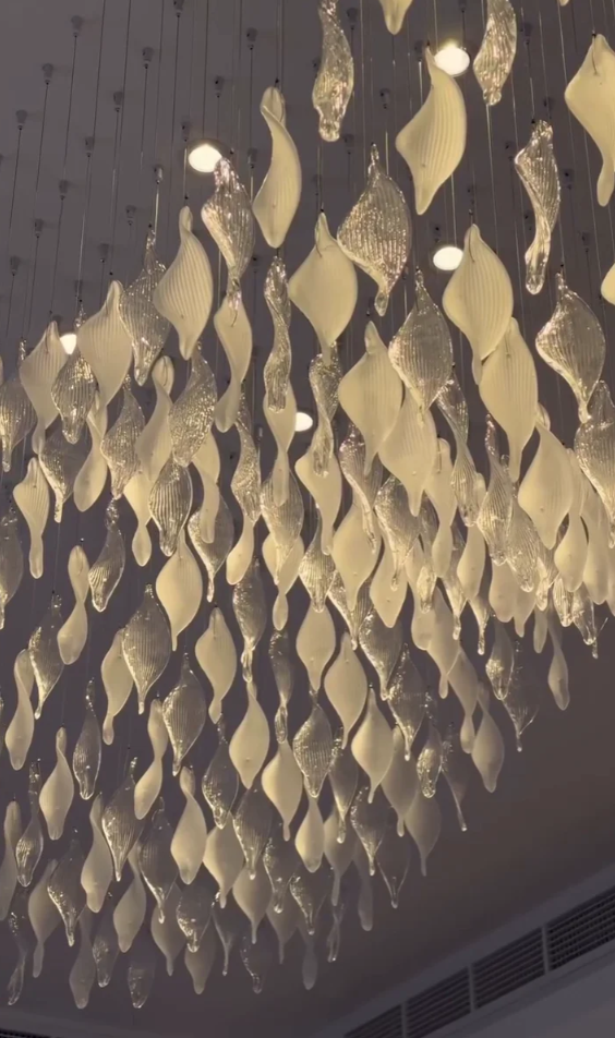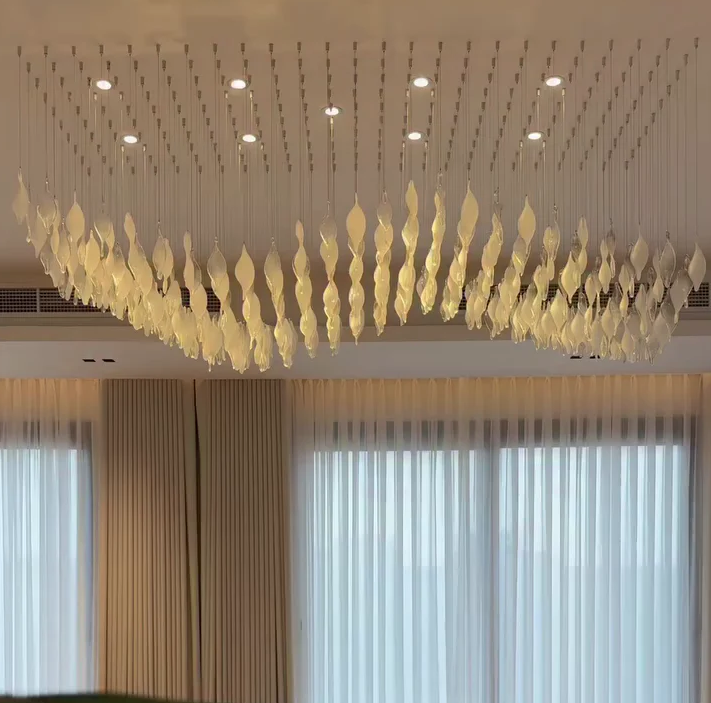 Modern Floating Twisted Glass Leaves Chandelier for Living Room