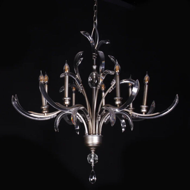 Modern Flower Branch Candle Light Teardrop Crystal Pendant for Living/Dining Room