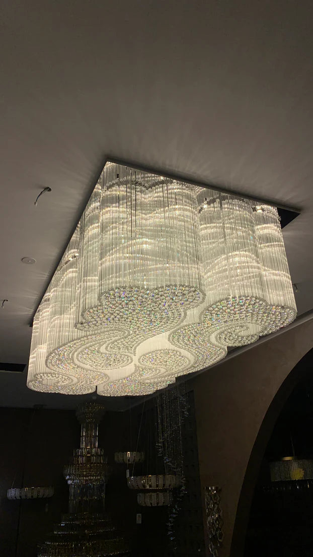 Modern Flush Mounted Square Hollow Crystal Tubes Chandelier for Hotel/Restaurant/Living Room