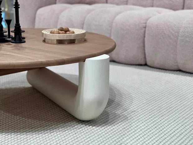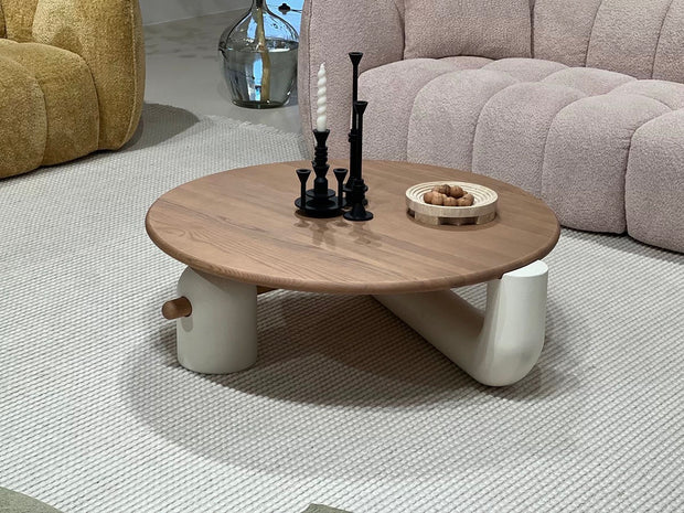 Featuring a modern and elegant French cream style, this round coffee table adds a touch of sophistication to any living space. Its simple design and smooth finish provide a perfect balance of functionality and refinement. Elevate your home decor with this stylish and timeless piece.