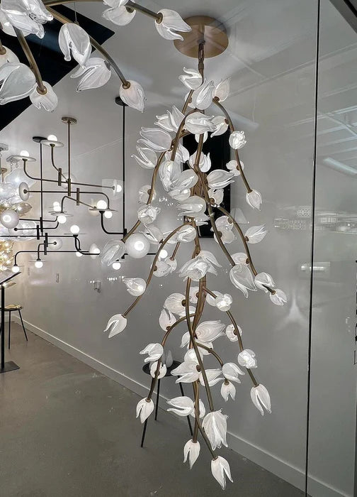 Modern Glass Flower Vertical Chandelier for High-ceiling