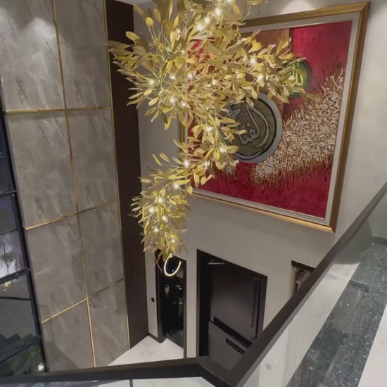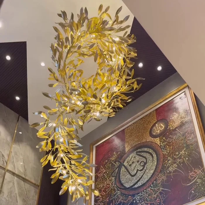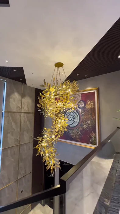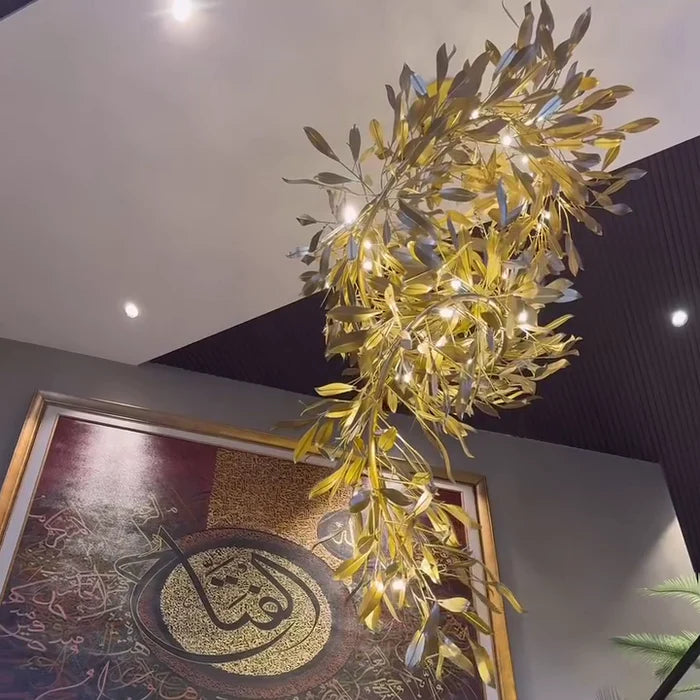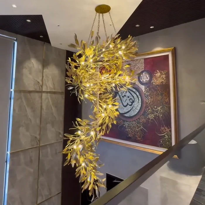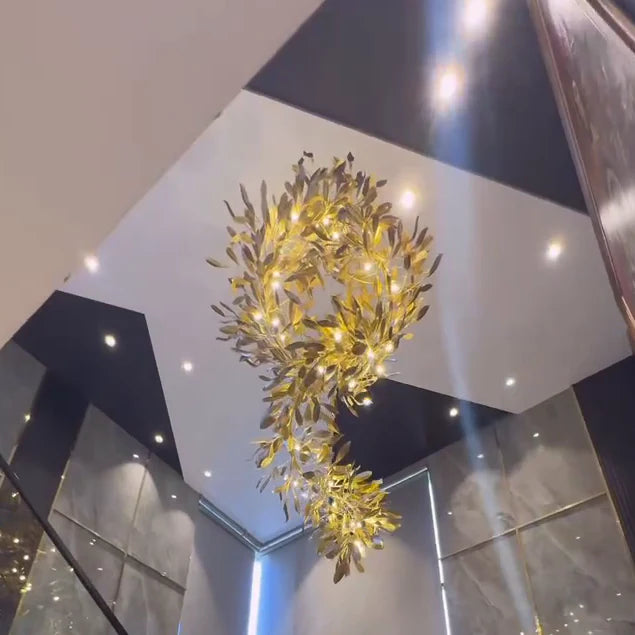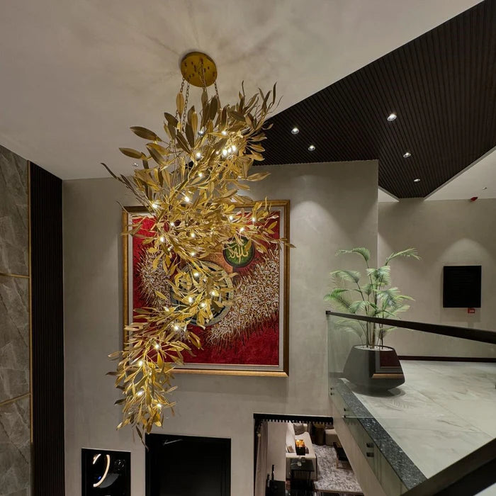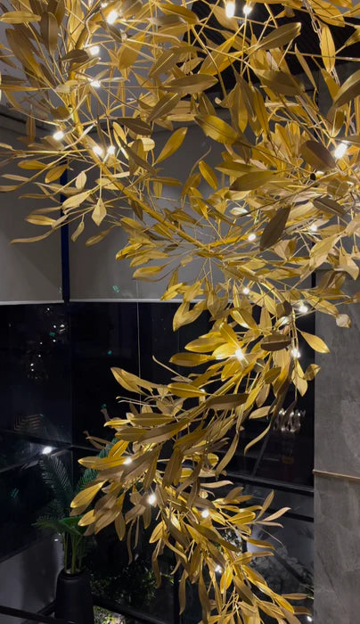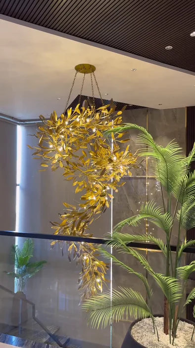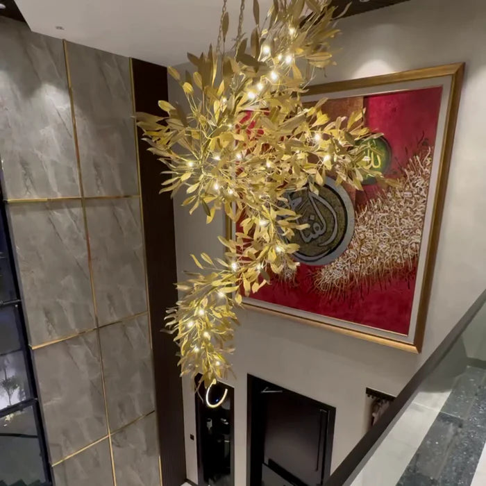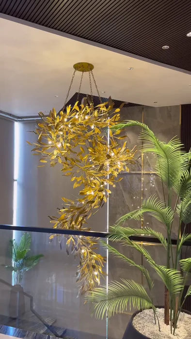 Modern Gold Leaves Tree Chandelier for High-ceiling