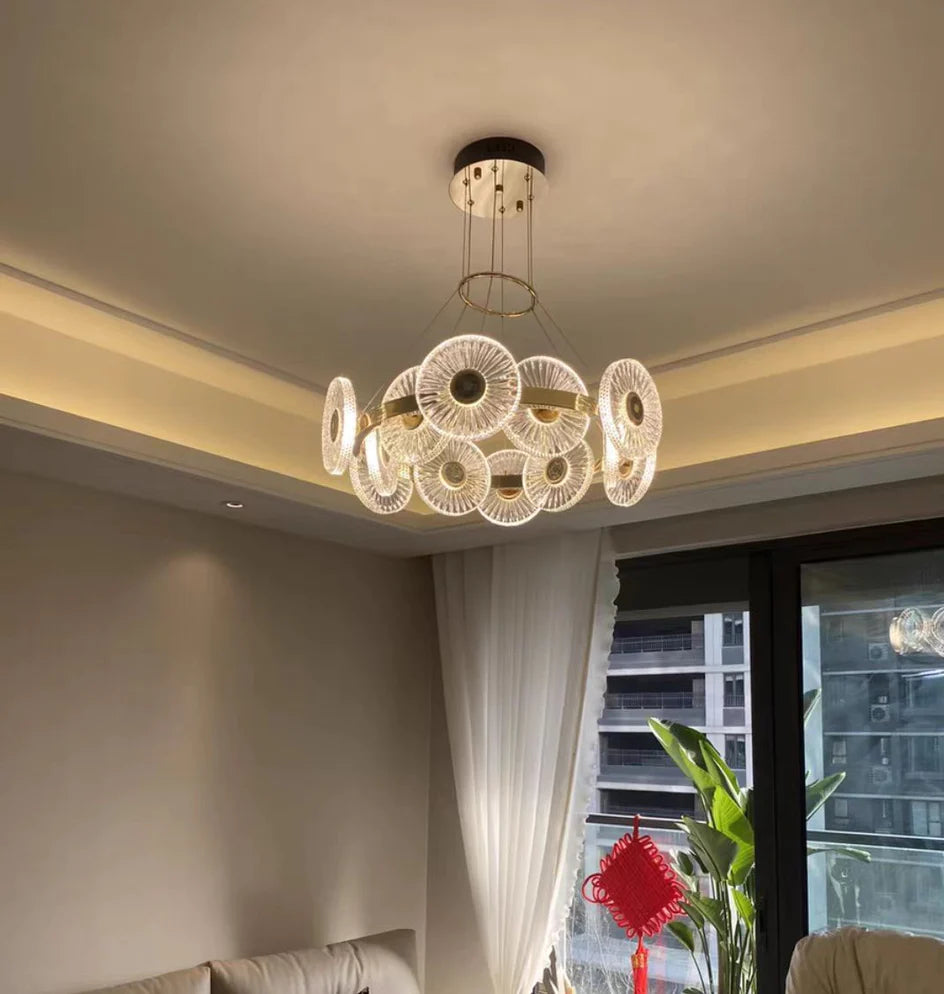 Modern Light Luxury Creative Round Acrylic Pendant Chandelier for Living/Dining Room/Bedroom