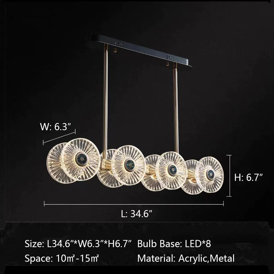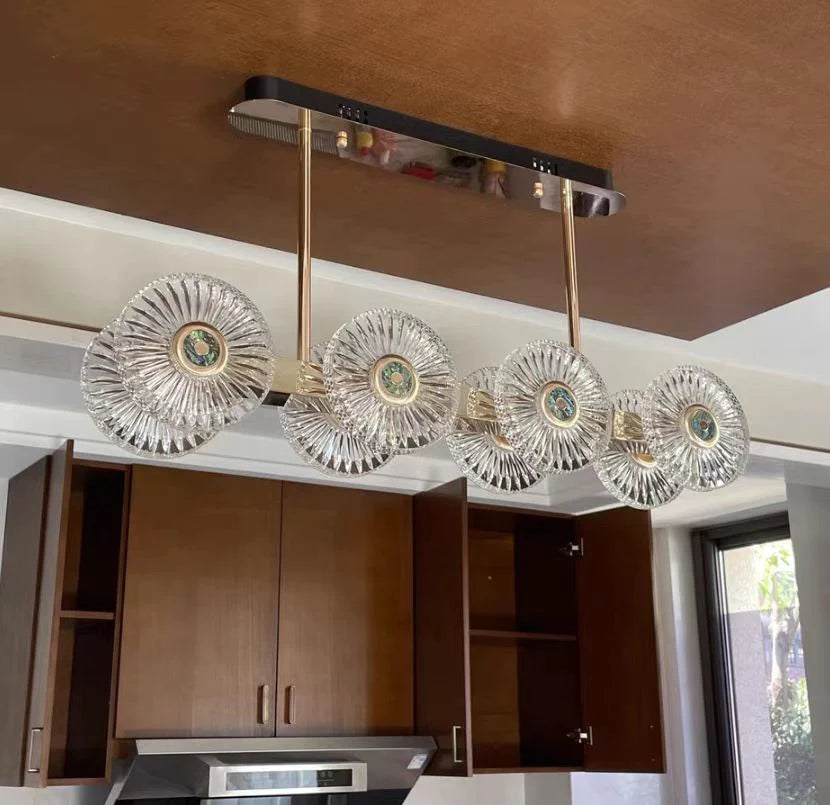 This set of chandeliers is made of acrylic and metal together. The multi-pronged cut acrylic shade creates a radiant glow. Stunning ceiling chandelier shade creates a romantic and sweet ambiance that illuminates your night. Beautiful design that is bright from any angle. Natural shells with a mirror finish plated body add to the overall beauty of the chandelier. This is a good value for money product that makes the living room luxurious.Two types to choose from: the round shape is more suitable for bedroom and living room, and the long oval shape matches kitchen island or dining table well.