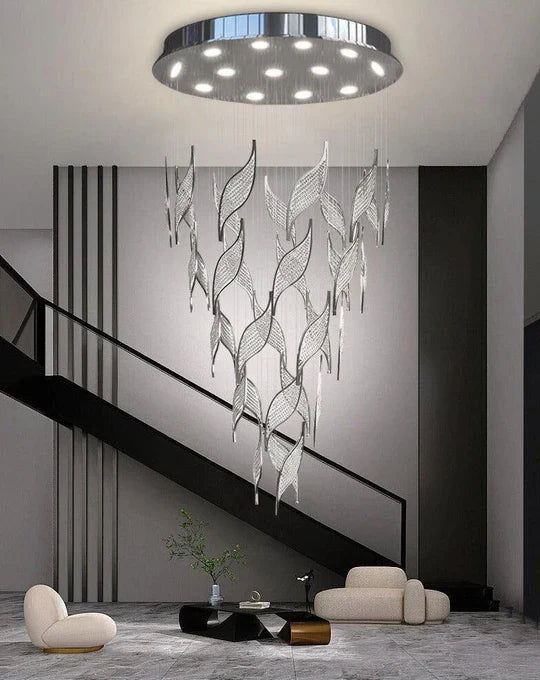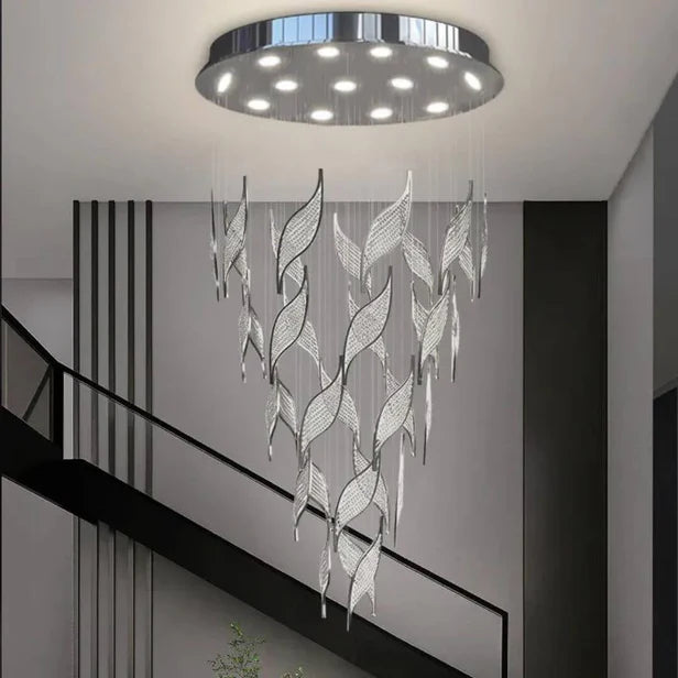 Elevate the design of your living room, staircase, or duplex with our Modern Light Luxury Multi-layered Openwork Leaf Crystal Chandelier. Crafted with a sophisticated aesthetic, this chandelier creates a unique atmosphere while showcasing an innovative design. Let your space exude creativity and style with this stunning centerpiece.