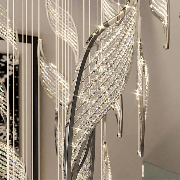 Modern Light Luxury Multi-layered Openwork Leaf Crystal Chandelier for Living Room/ Staircase/Duplex