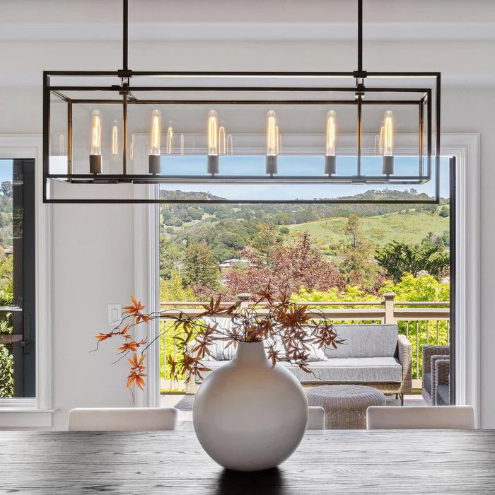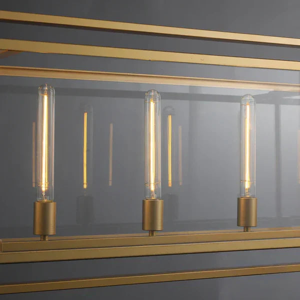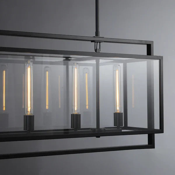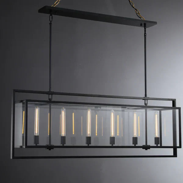 Modern Linear Steel Glass Lampshade Chandelier for Dining Room/Kitchen Island