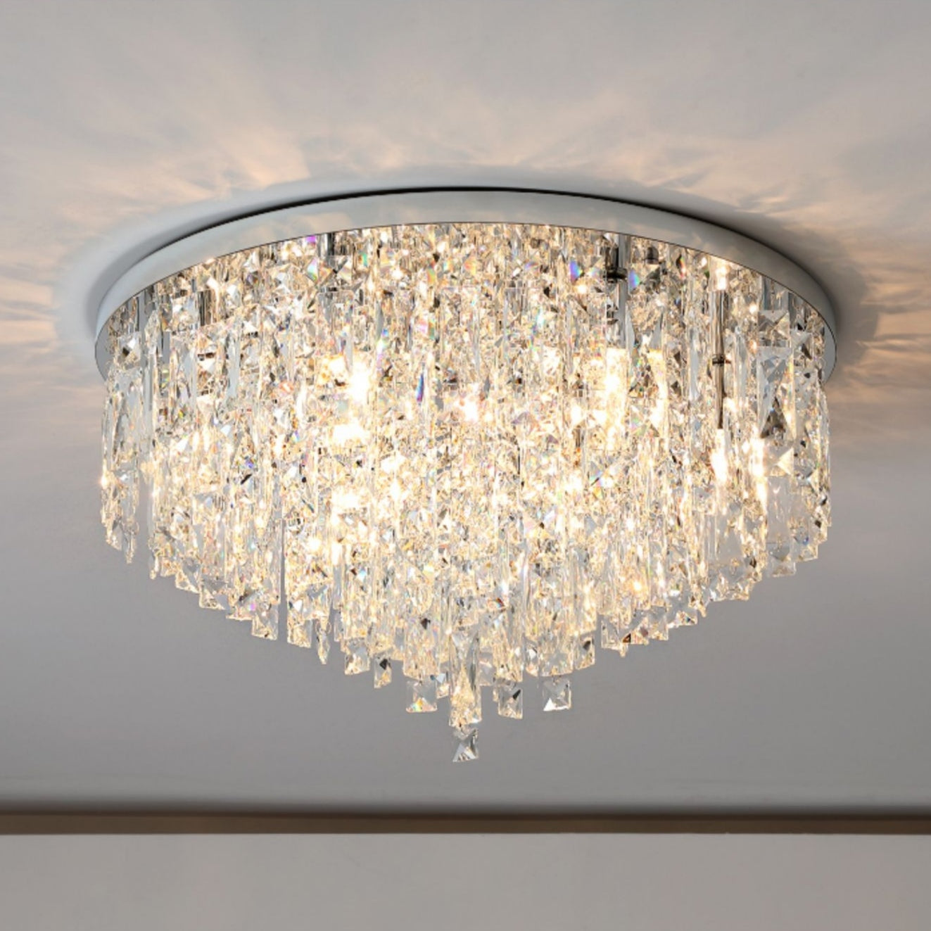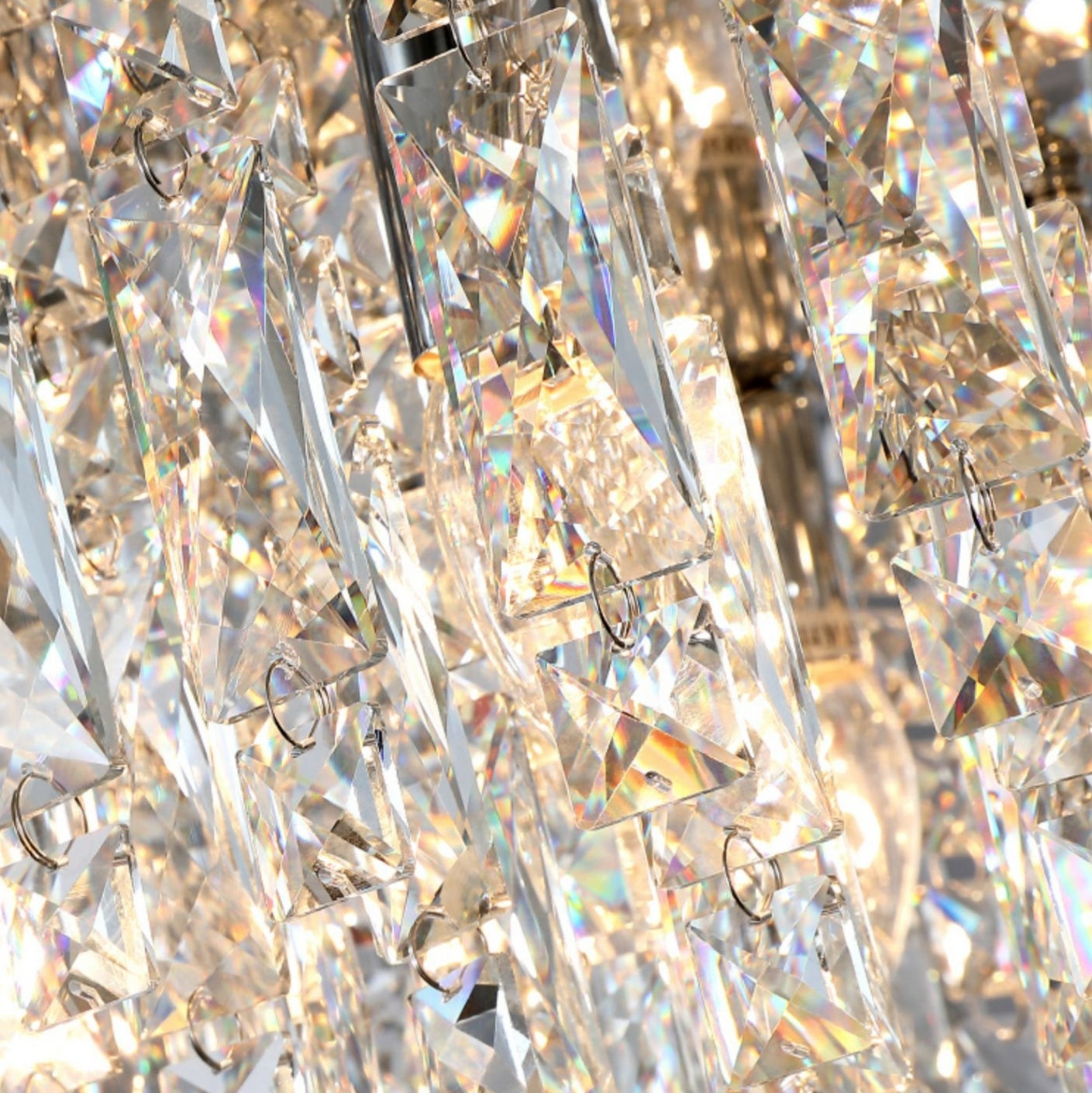 The whole light body is made of high-quality crystal and stainless steel. It is designed into a luxury modern style. It is absolutely stunning no matter light turns on or not.