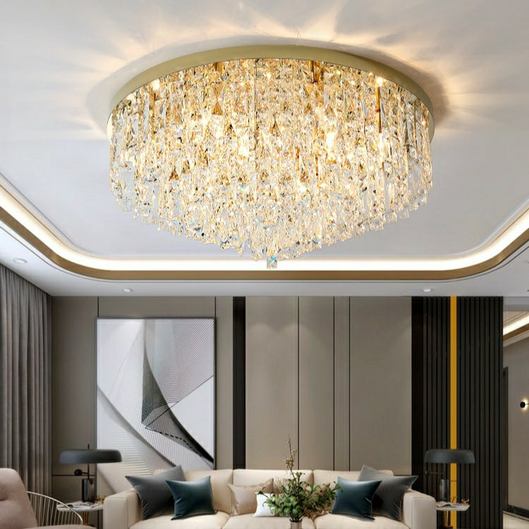 Modern Living Room Round Crystal Chandelier Gold/ Silver Finish Ceiling Light Fixture For Bedroom