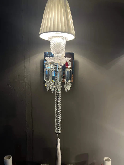 Modern Luxury 1 Light Crystal Wall Light with Fabric Lampshade