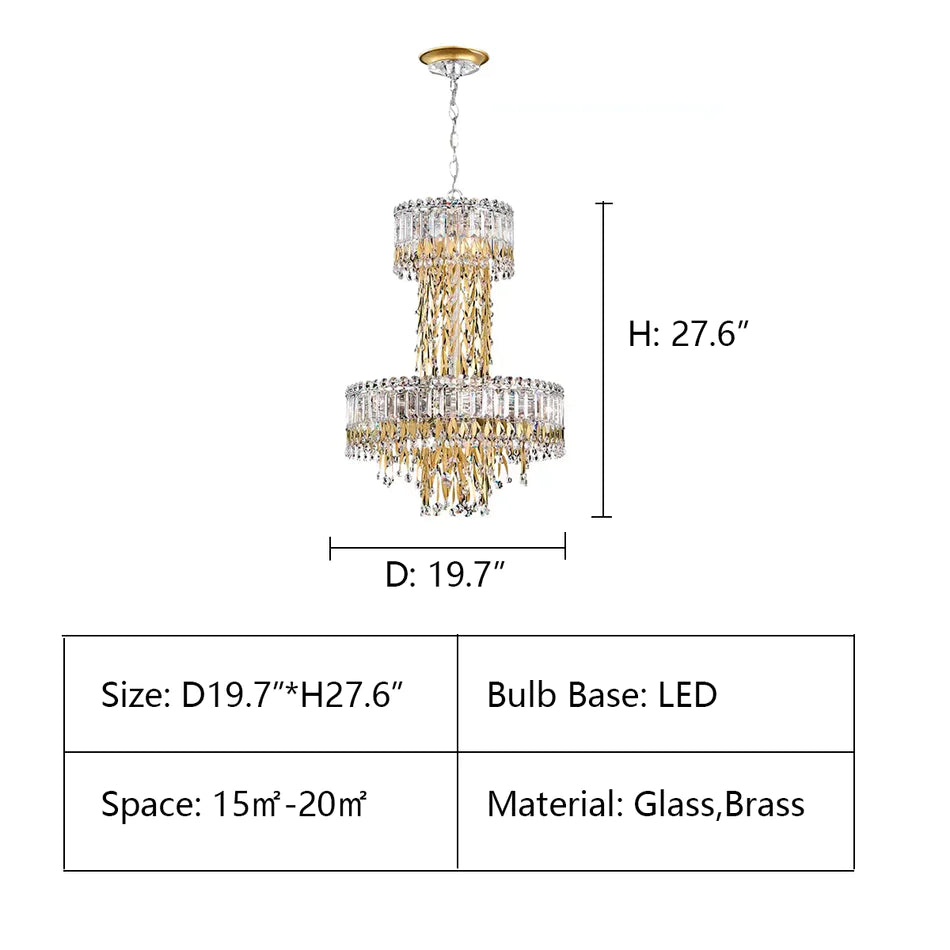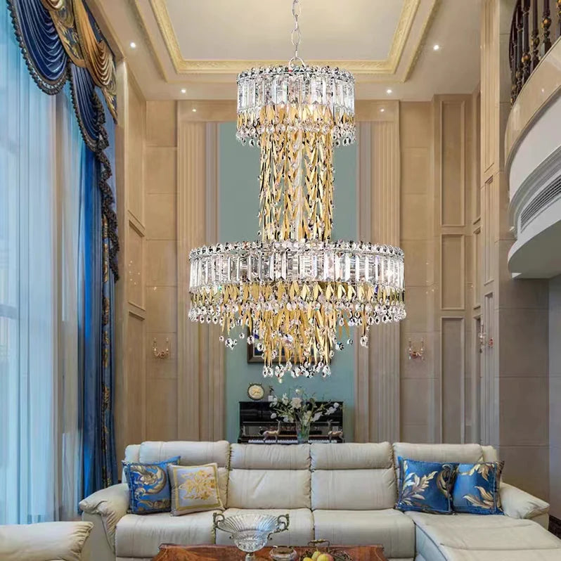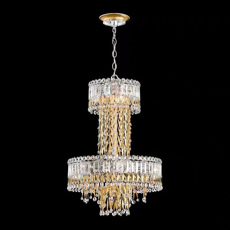This luxury chandelier is made of high quality K9 crystal and metal material.This chandelier features a cascading arrangement of handcrafted metal willow leaves topped with octagonal faceted crystals. The crystal rods refract the light to bring a layer of elegance and illumination to your home space.Perfect for installation in living room,dining room,bedroom,foyer,etc.