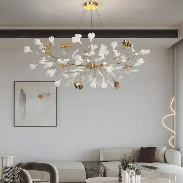 Modern Luxury Linear Ginkgo Ceramic Chandelier for Dining Room/Kitchen Island