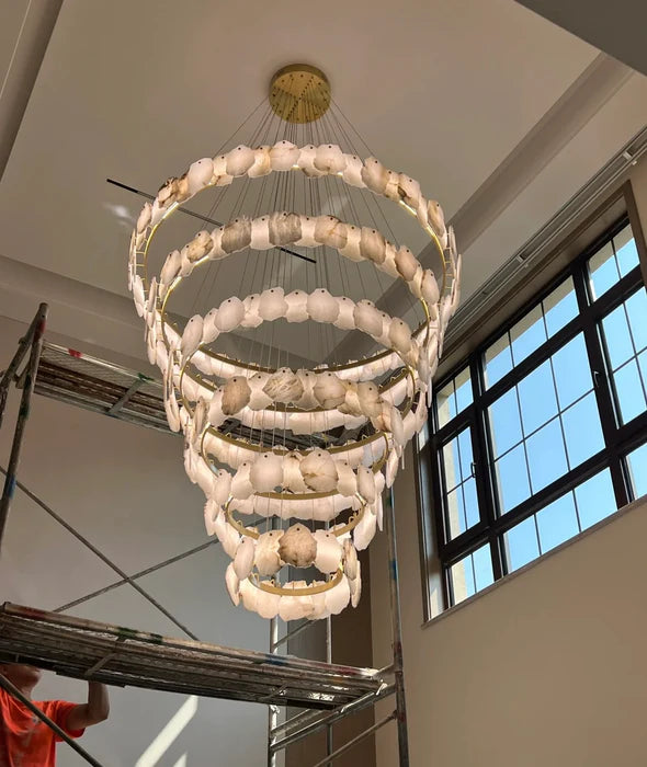 Modern Multi-layer White Alabaster Chandelier for Staircase/Foyer