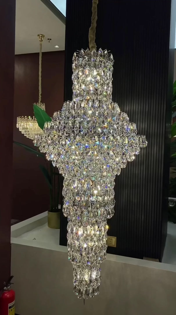 Modern Nail Shaped Crystal Chandelier for Foyer/Staircase/High-ceiling