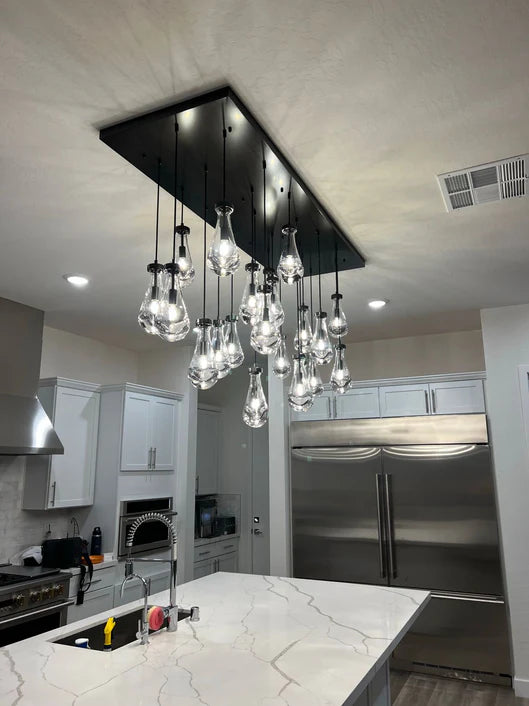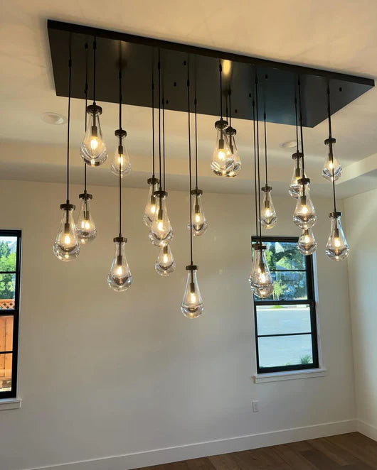 Modern Raindrop Crystal Chandelier with Rectangular Canopy