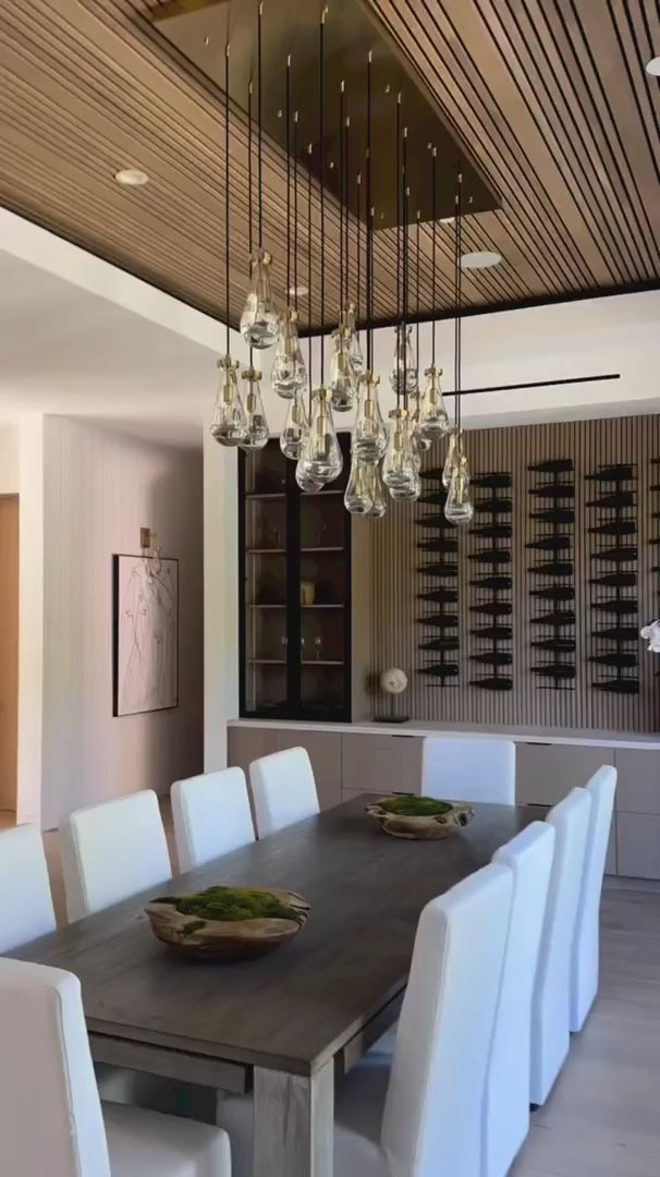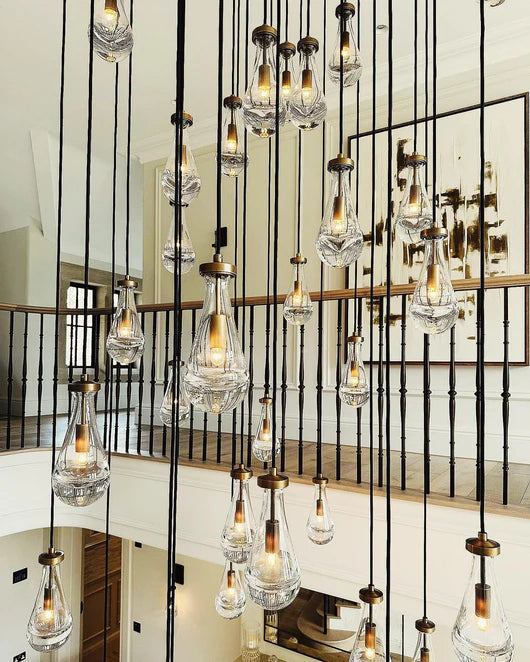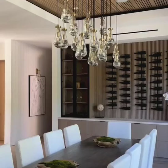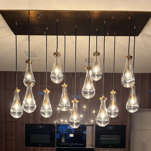 Introduce a mesmerizing underwater glow to your space with the Modern Raindrop Crystal Chandelier. Made with raindrop-shaped glass and a sturdy metal frame, this piece brings a captivating and enchanting ambiance to any room. Each glass drop measures 13cm in diameter and 28cm in height, adding a touch of elegance to your home.