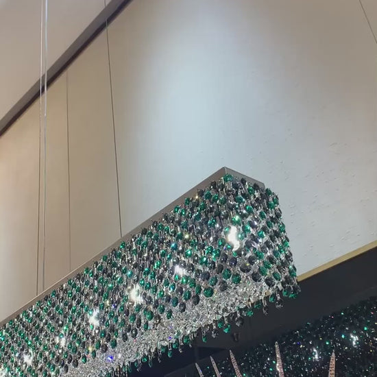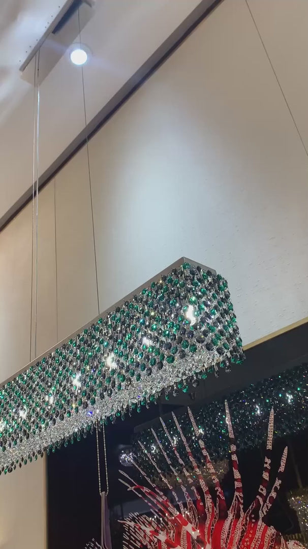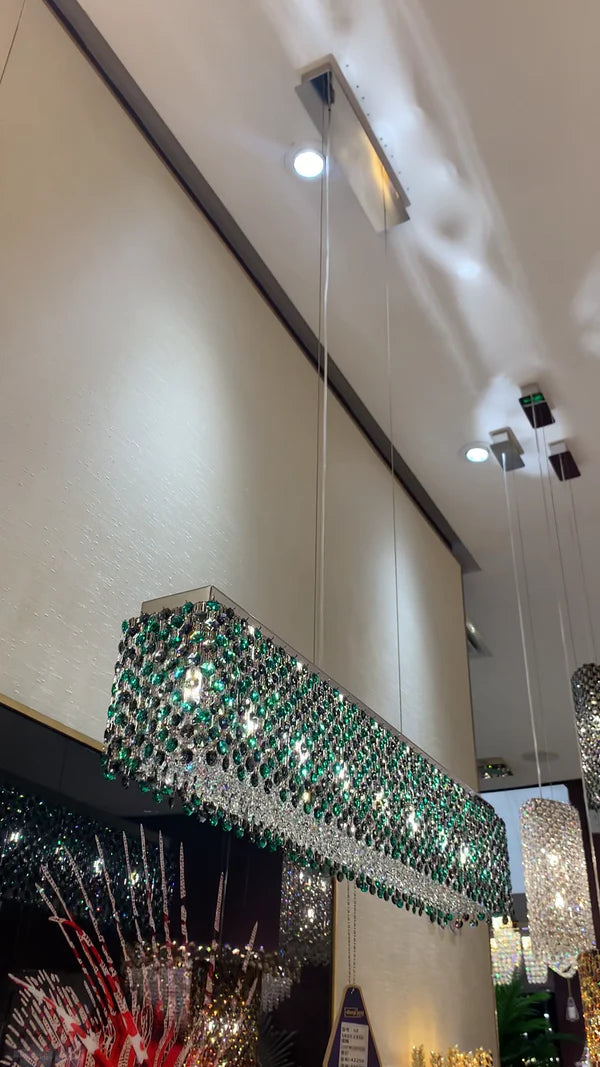 Modern Rectangular Green/Smoky Grey Crystal Chandelier for Dining Room