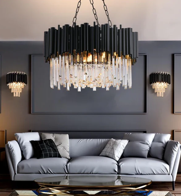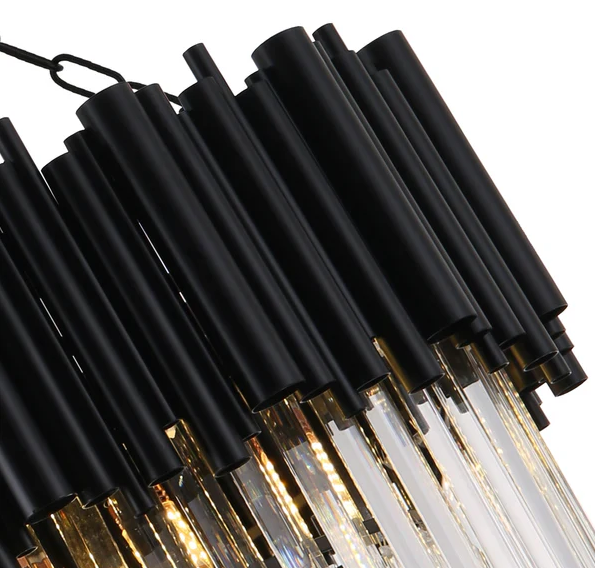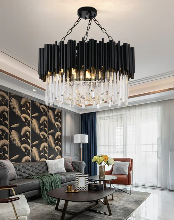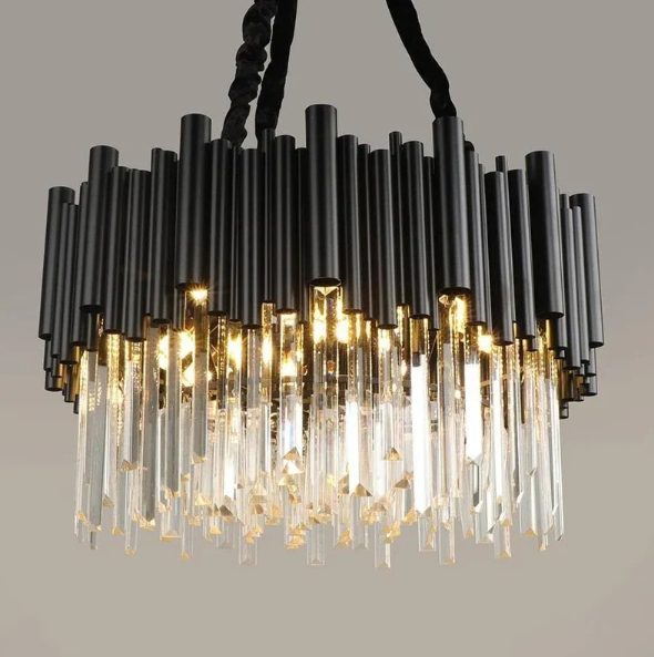 Modern Round Black Tube Crystal Chandelier for Low Ceiling
