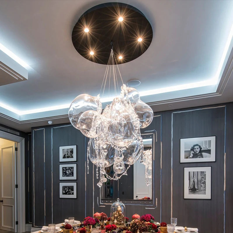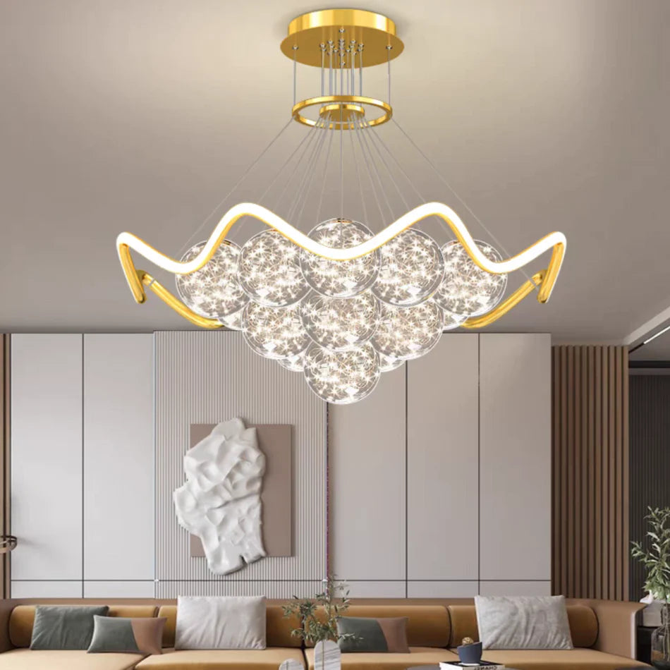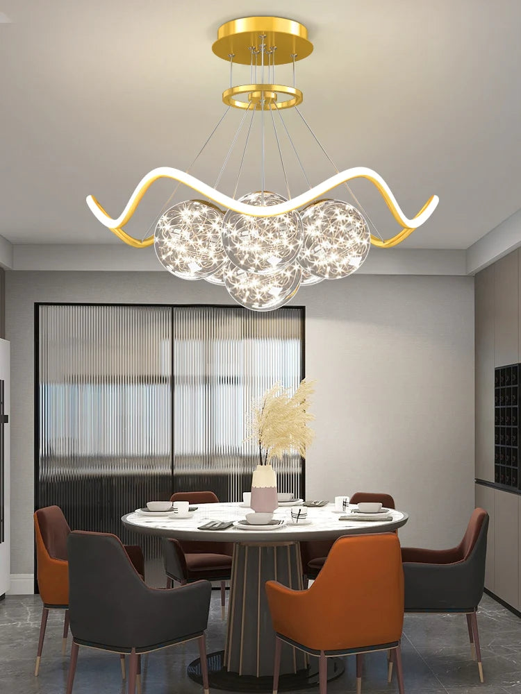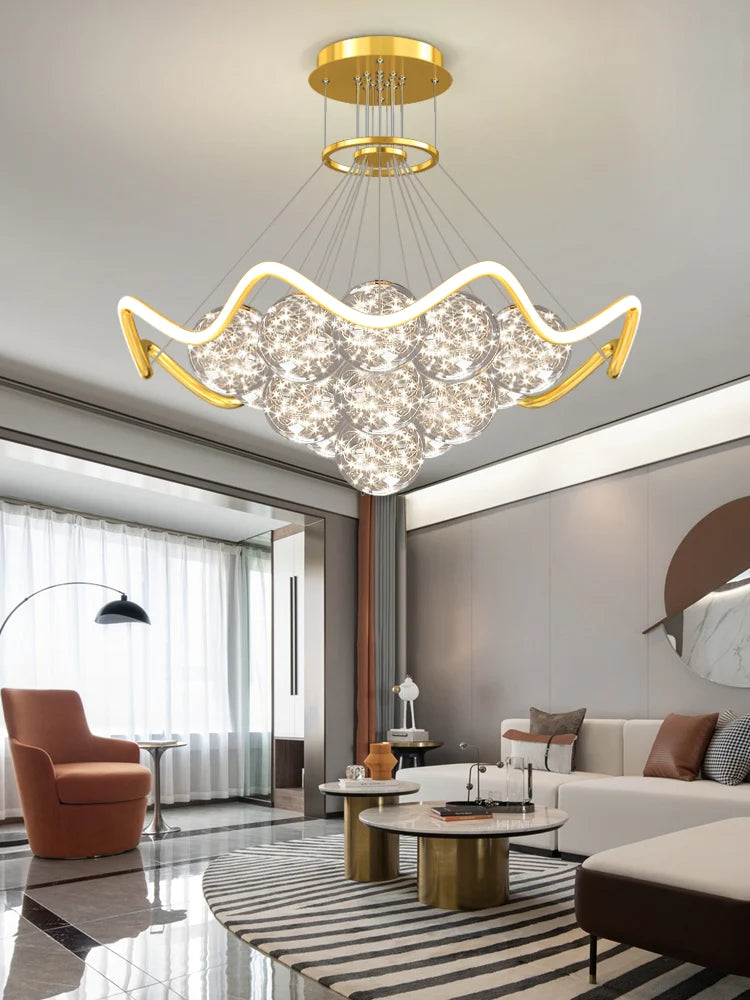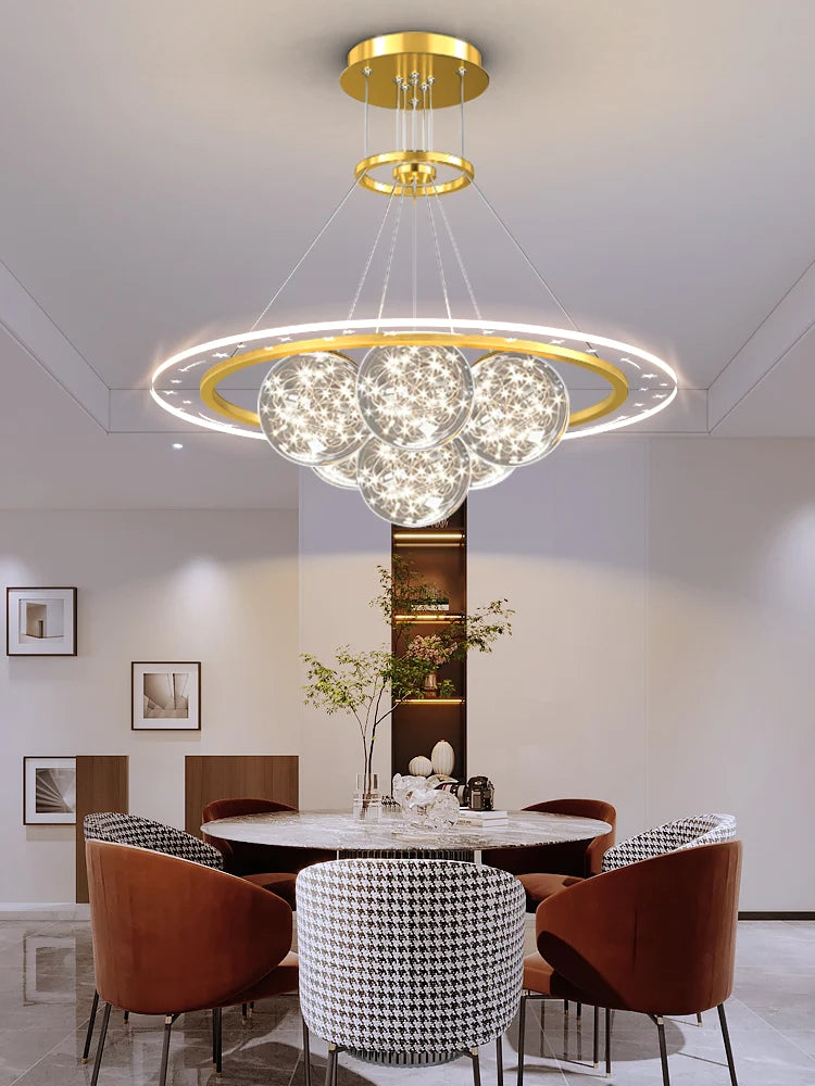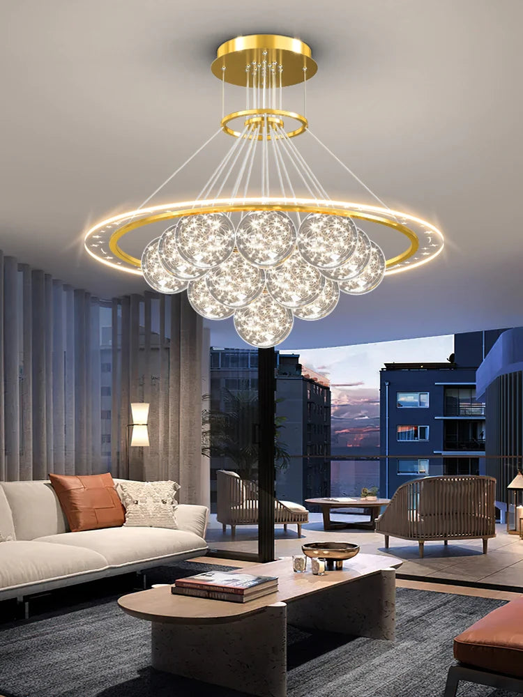 Modern Round Full Sky Star Light Transparent Glass Ball Chandelier for Living/Dining Room/Bedroom