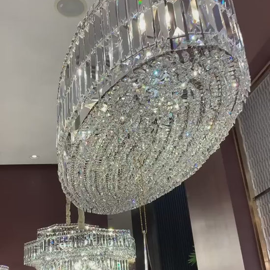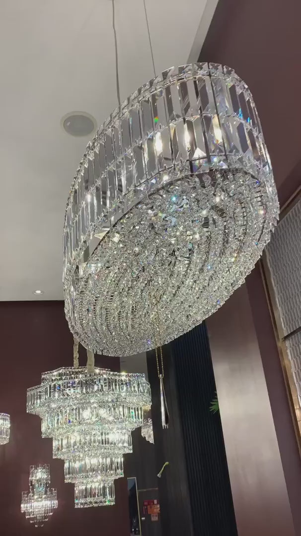 Modern Silver Ceiling Round/Rectangle Crystal Chandelier Set for Living Room/Dining Room/ Bedroom Decorative Light Fixture