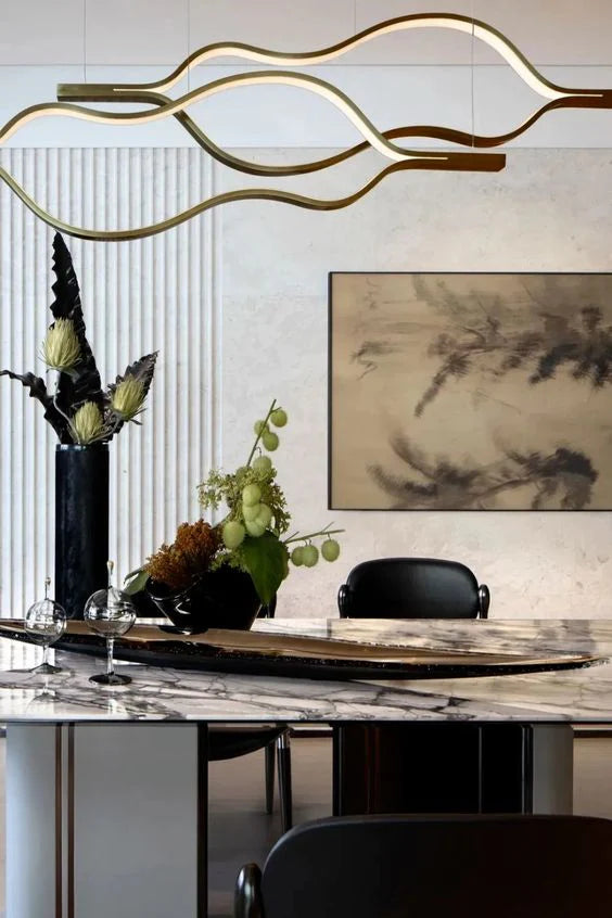 Elevate the aesthetic of your living, dining or kitchen space with our Modern Simple Brass Waving Chandelier. Expertly crafted from high-quality brass, this sleek and stylish piece complements a minimalistic contemporary decor. Enjoy the assurance of superior quality and sophistication.