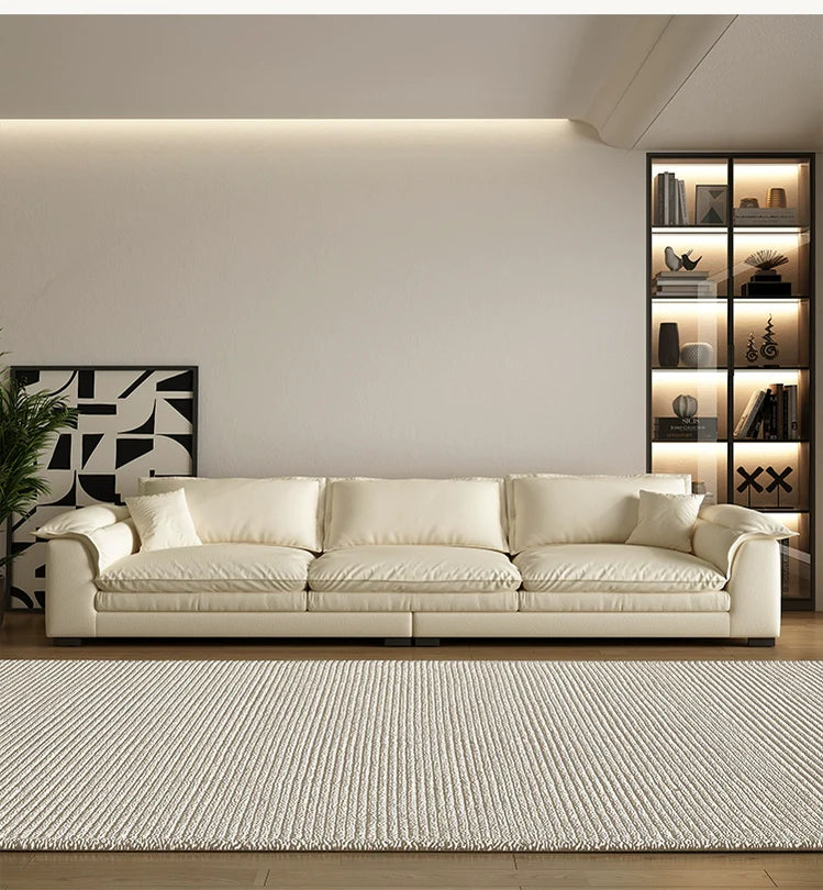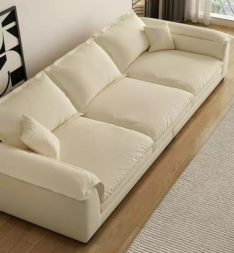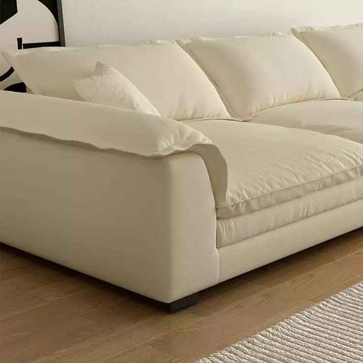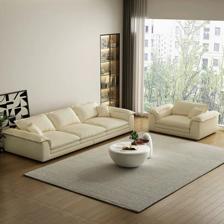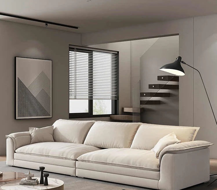 Bring modern sophistication to your home with our minimalist leather/fabric sectional sofa. It features a comfortable and enriching design with breathable, anti-wrinkle fabric and a removable, washable cushion cover. Durable and stylish, this sofa is perfect for any living room.
