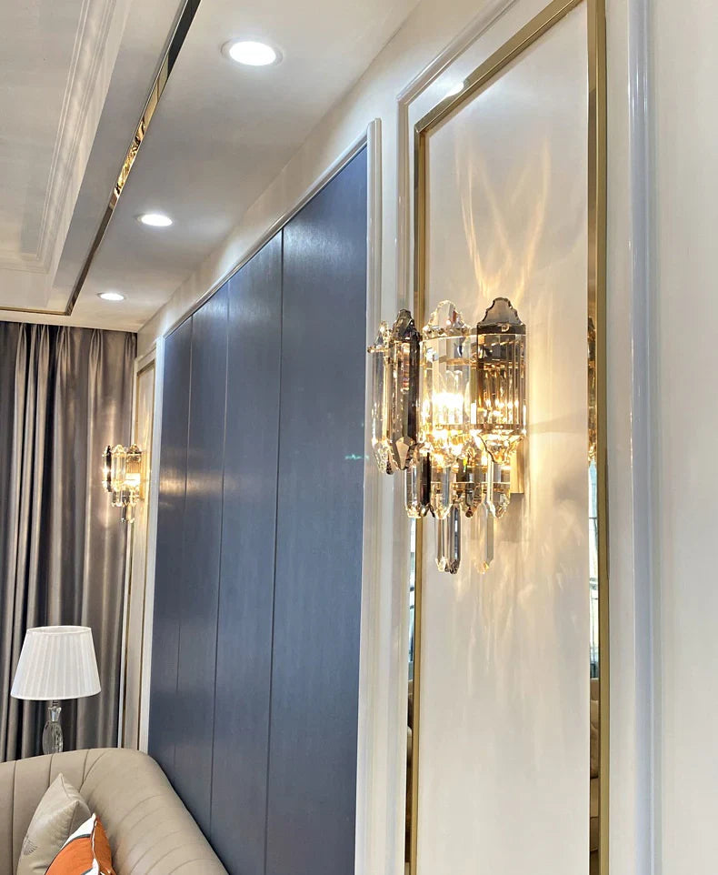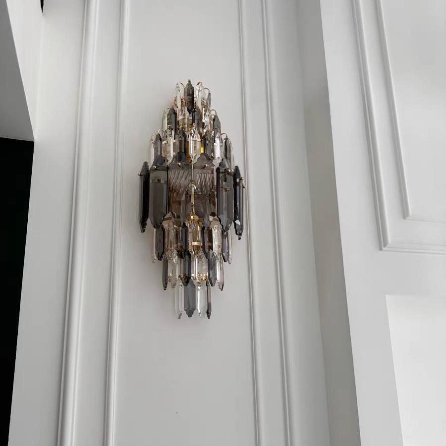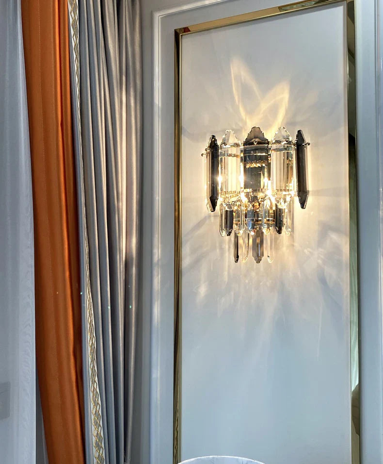 Modern Smoked&Clear Crystal Wall Lamp