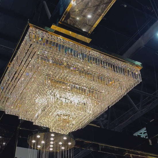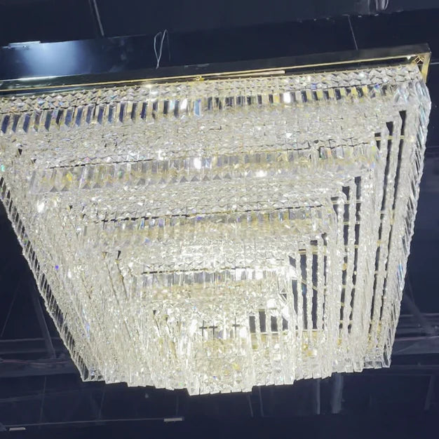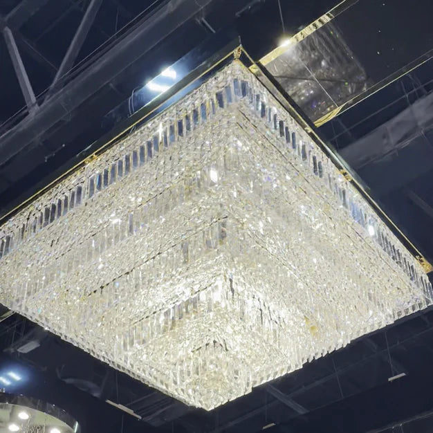 This modern square crystal chandelier is the perfect addition to any living room or bedroom. Made with high-quality crystal, the sleek and stylish design adds a touch of elegance to any space. Illuminate your home with this advanced lighting fixture to create a luxurious and sophisticated atmosphere.