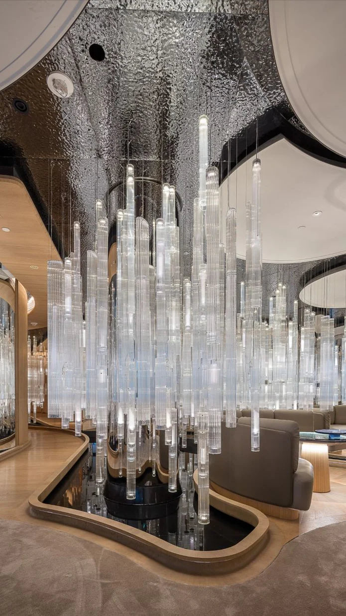 Illuminate your space with the Modern Stick Clear Glass Pendant. Its sleek design adds a touch of sophistication to any living room, hotel, or restaurant. Made from high-quality glass, this pendant provides exceptional clarity and brightness, making it perfect for creating a warm and inviting atmosphere. Elevate your interior with this special piece.