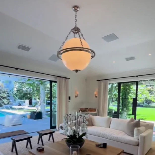 Expertly crafted for a sleek and modern look, the Modern White Globe Chandelier is perfect for adding a touch of sophistication to your living room or bedroom. The white glass globe provides soft and uniform lighting, creating a warm and inviting ambiance for any space.