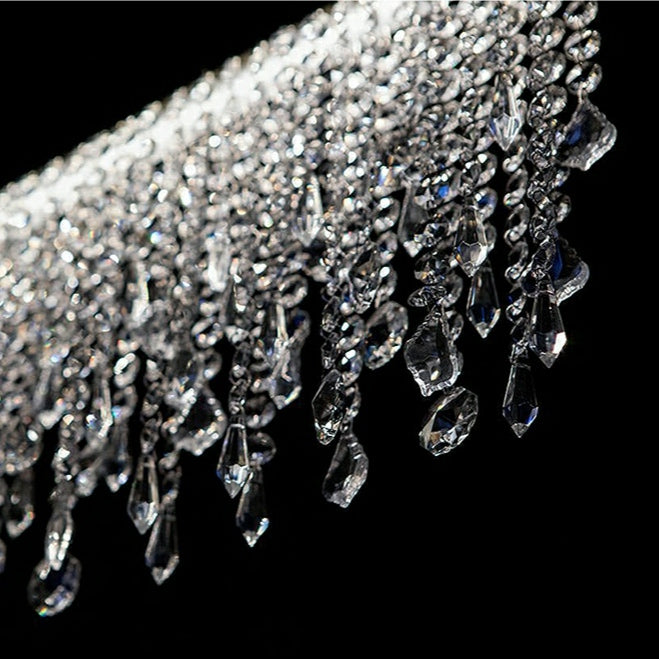 The whole light body is made of high-quality crystal and stainless steel. It is designed into a luxury modern style. It is absolutely stunning no matter light turns on or not.