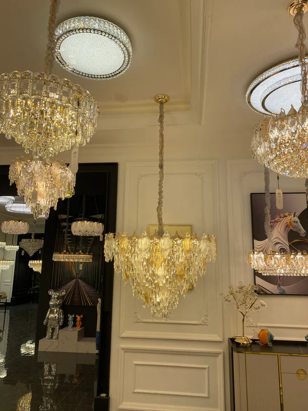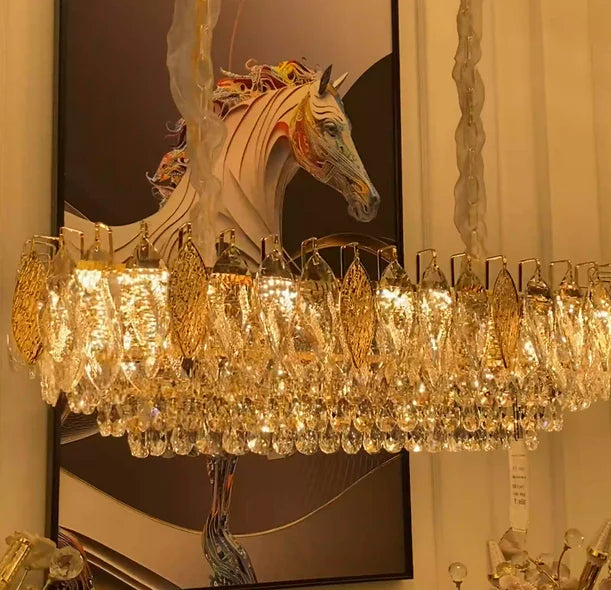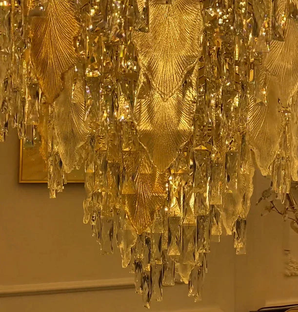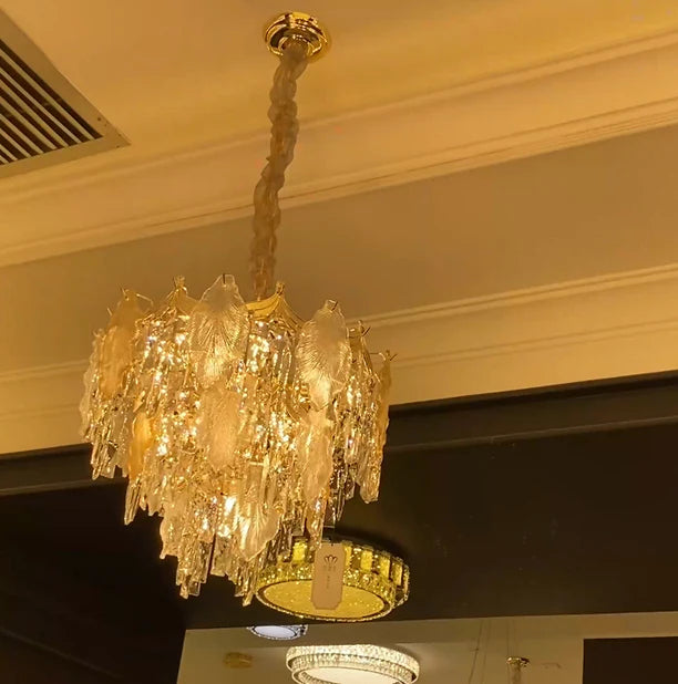 Multi-tiered Leaf Crystal Chandelier for Living Room