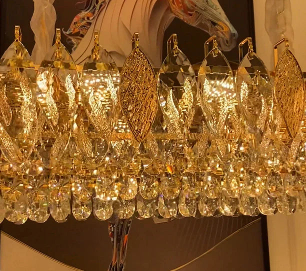 This exquisite leaf crystal chandelier can be widely used in home decoration in the living room, bedroom, dining room, etc., can also be used in hotels, cafes, restaurants and other commercial places to create a sense of high-end luxury, enhance the decorative character.