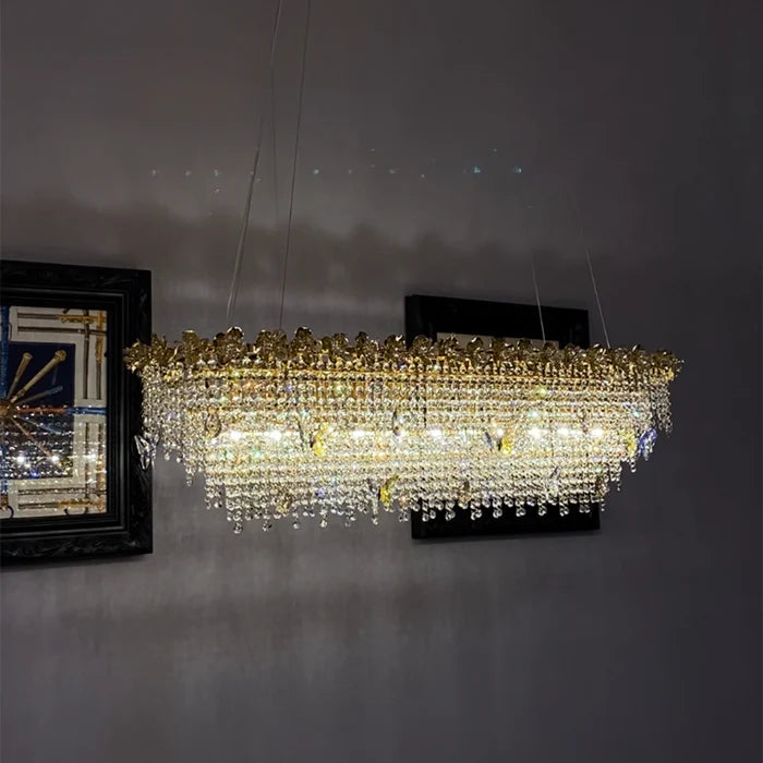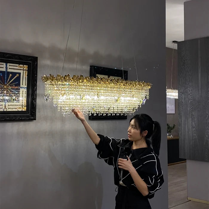 New Modern Luxury Rectangle Art Design Butterfly Crystal Chandelier for Kitchen Island/Dining Area