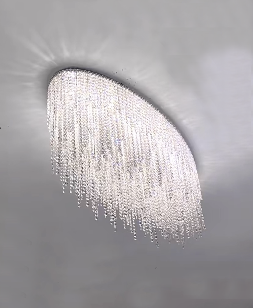 Modern Oval/Round Tassel Flush Mount Crystal Ceiling Light Chandelier